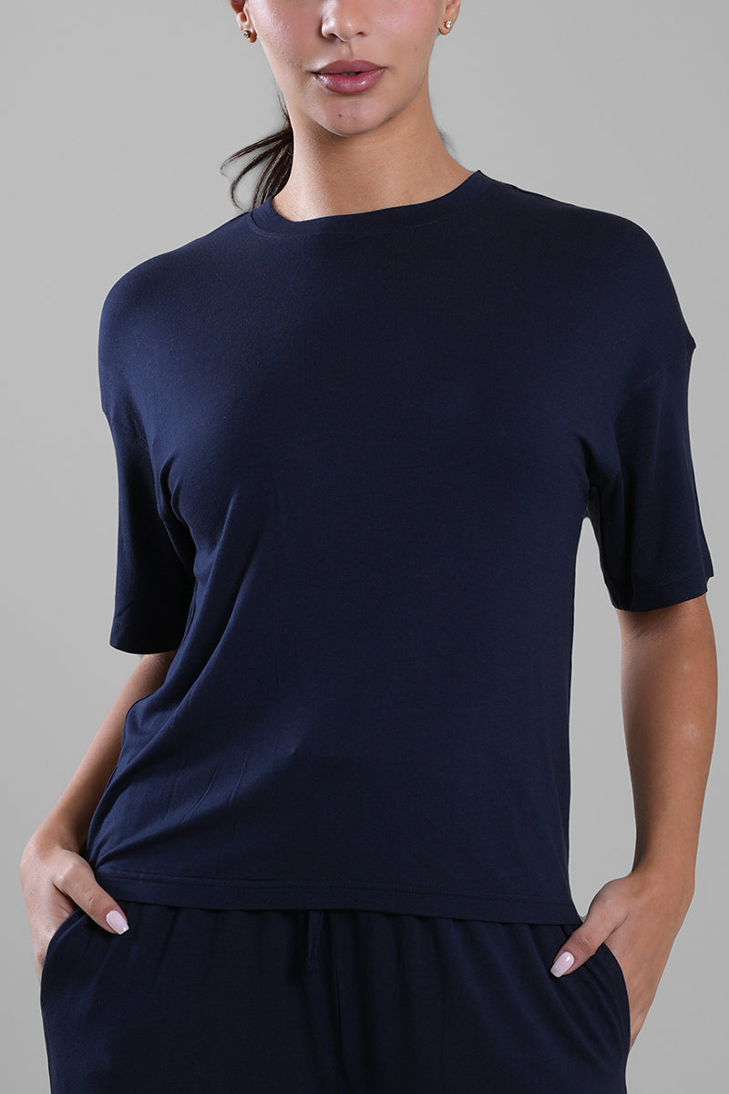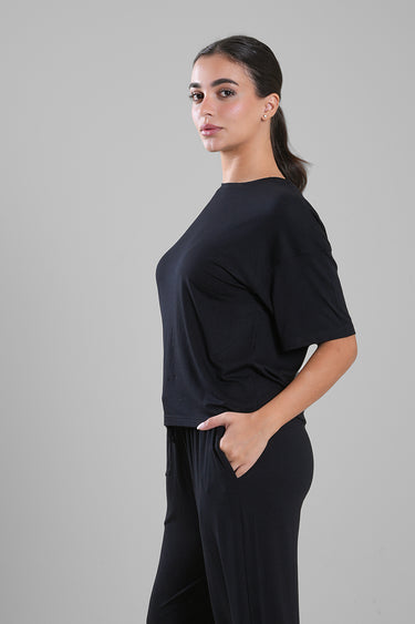 بلوزة نسائية بتصميم بسيط وقصة مريحة مع أكمام قصيرة وياقة أنيقة. مناسبة للارتداء اليومي وسهلة التنسيق، ويمكن ارتداؤها بمفردها أو ضمن طبقات لإطلالة عملية وعصرية.