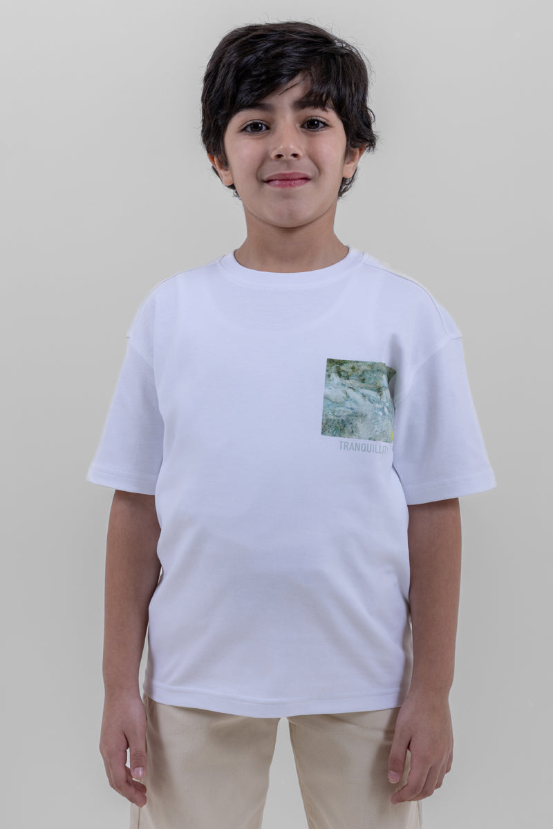 تيشيرت اطفال بتصميم مريح مناسب للاستخدام اليومي يتميز بأكمام قصيرة وياقة دائرية لسهولة الارتداء قصة مريحة تمنح حرية الحركة أثناء اللعب والنشاطات اليومية تصميم عملي بطابع عصري يناسب ملابس الاطفال اليومية في السعودية