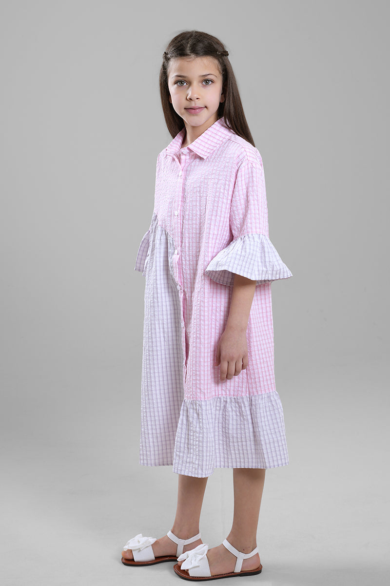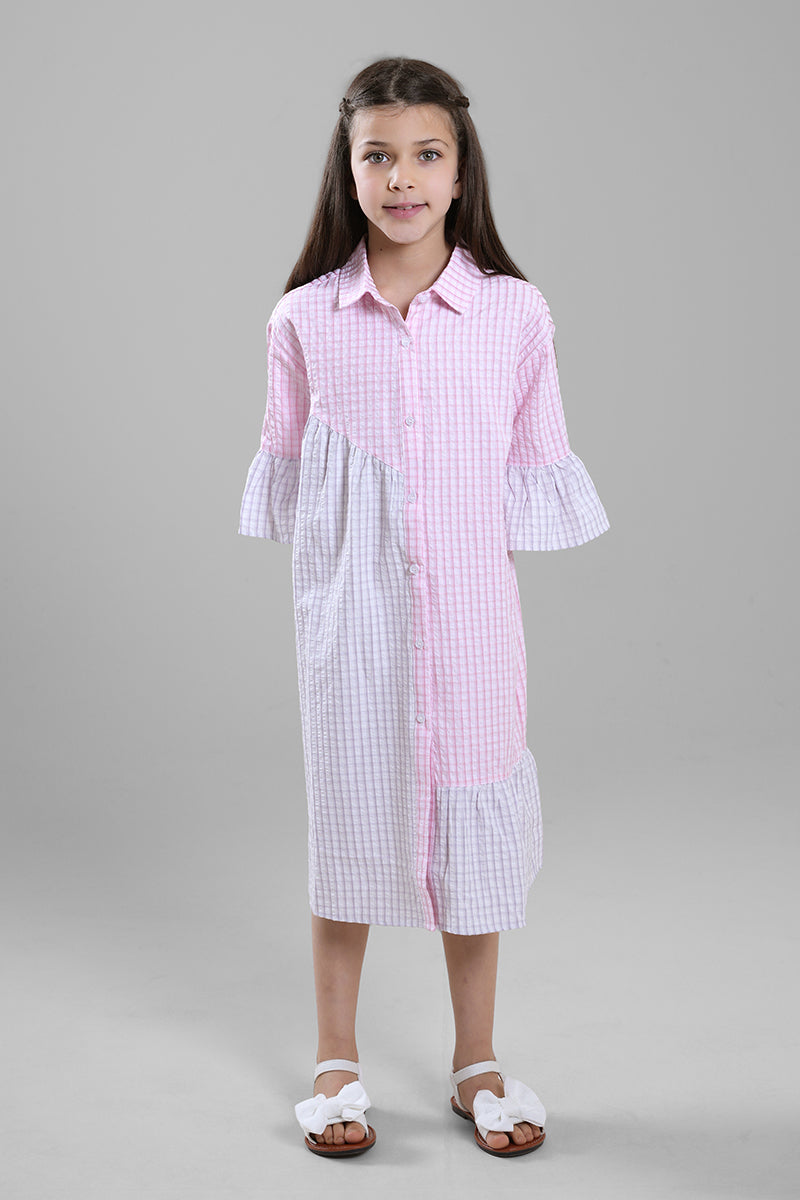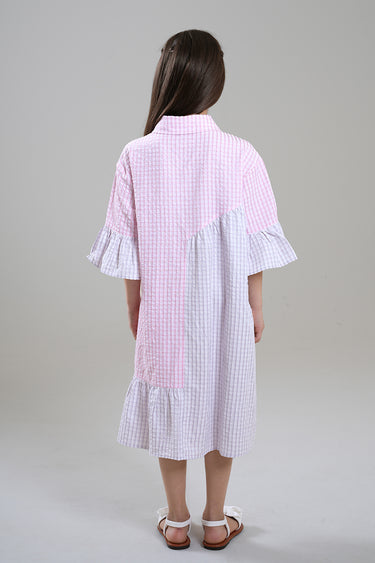 فستان بناتي بتصميم كاجوال عملي، يتميز بقصة قميص مع أزرار أمامية لسهولة الارتداء. يأتي بياقة كلاسيكية وأكمام مزينة وقصة مريحة بطول مناسب للحركة. مثالي للاستخدام اليومي والطلعات والإطلالات الكاجوال.