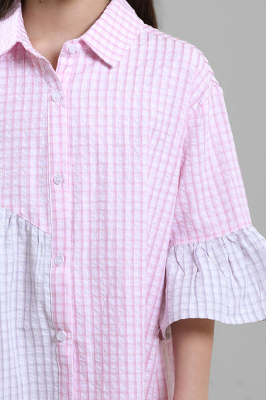 فستان بقصة قميص وأكمام مزينة