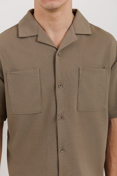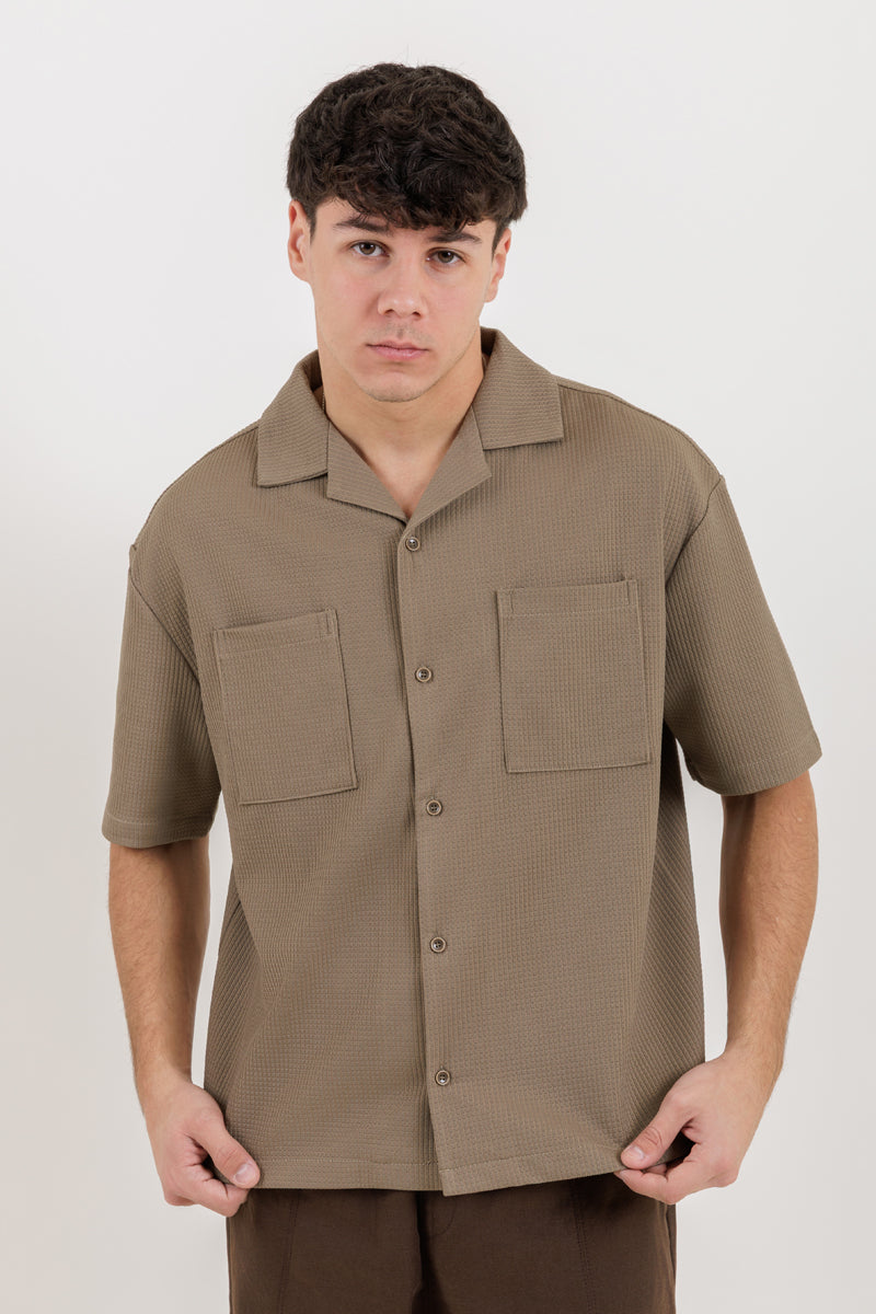 قميص بتصميم عملي يجمع بين الراحة والبساطة. مصنوع من قماش بنسيج خفيف يضيف لمسة هادئة دون مبالغة، مع قصة مريحة تناسب الاستخدام اليومي. يتميز بإغلاق أمامي بأزرار وياقة مفتوحة تمنح مظهراً متوازناً، إضافة إلى جيوب صدر تضيف جانباً عملياً للتصميم. قطعة سهلة التنسيق تناسب الإطلالات اليومية الهادئة.