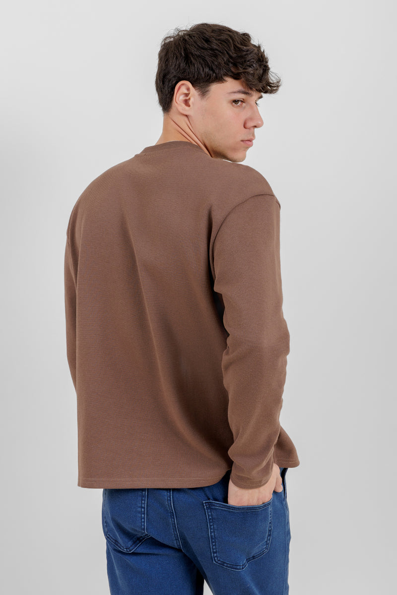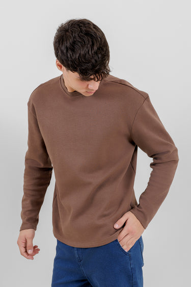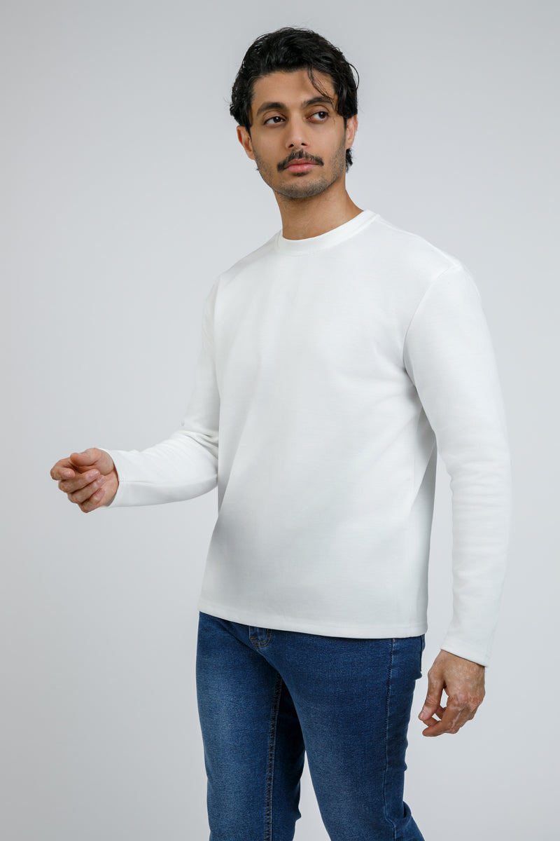 تيشيرت أساسي بأكمام طويلة وياقة دائرية