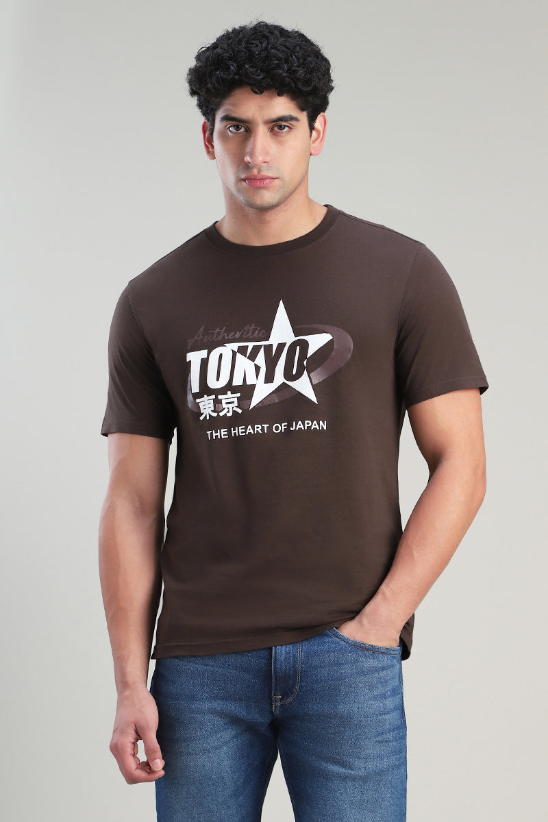تيشيرت رجالي بتصميم مطبوع وقصة مريحة واكمام قصيرة وخامة مريحة للاستخدام اليومي والاطلالات الكاجوال