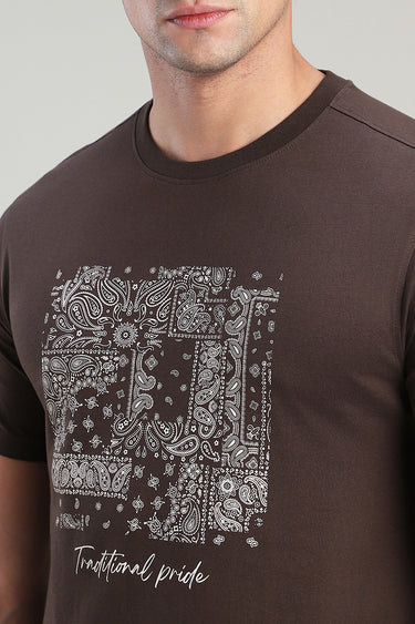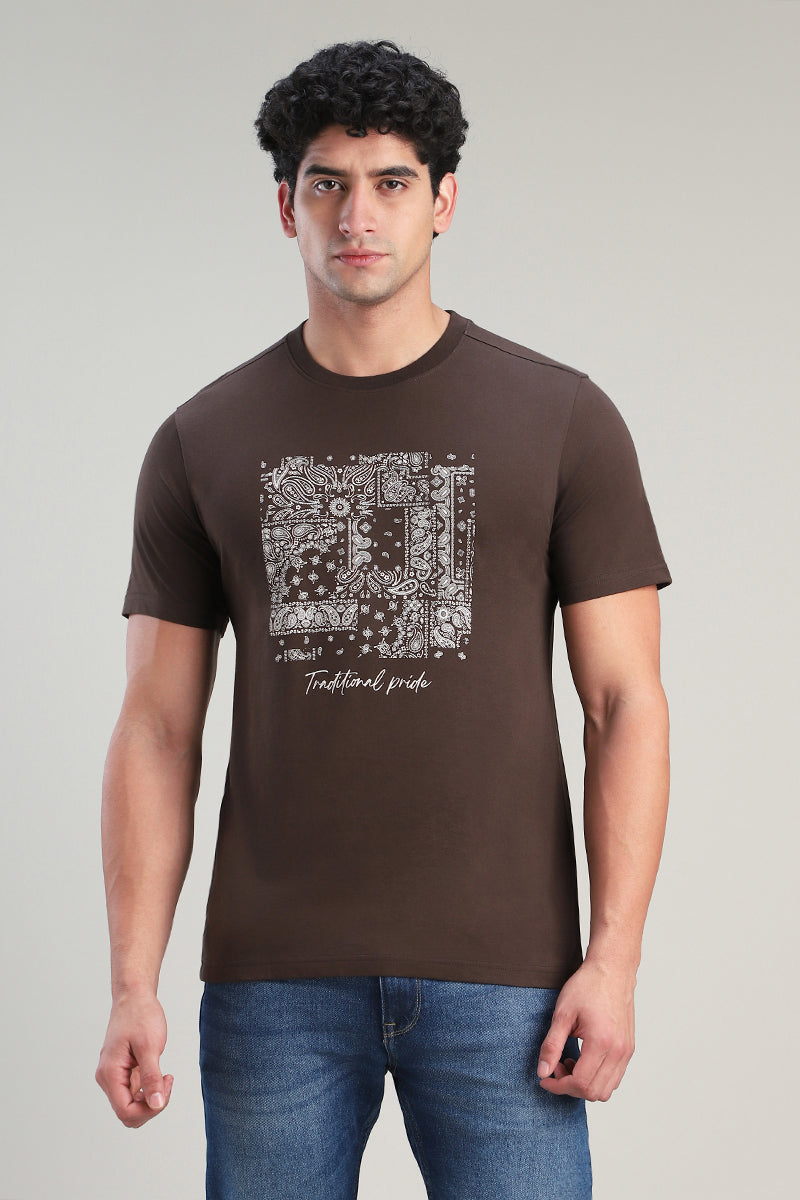 تيشيرت رجالي بتصميم مطبوع وقصة مريحة واكمام قصيرة وخامة مريحة للاستخدام اليومي والاطلالات الكاجوال