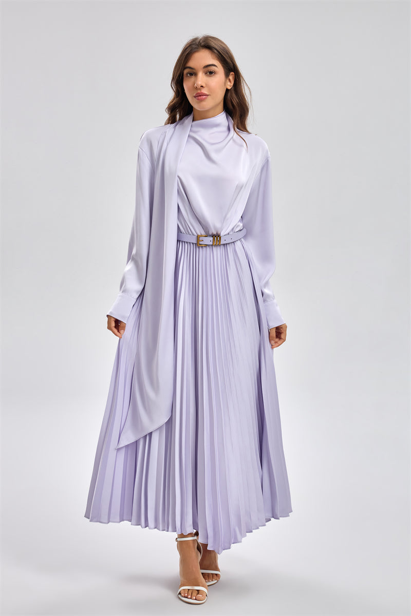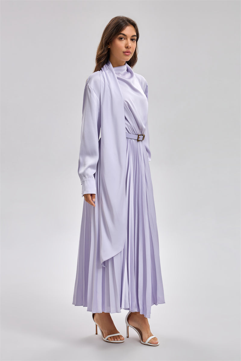 فستان ماكسي بكسرات وقصة محتشمة