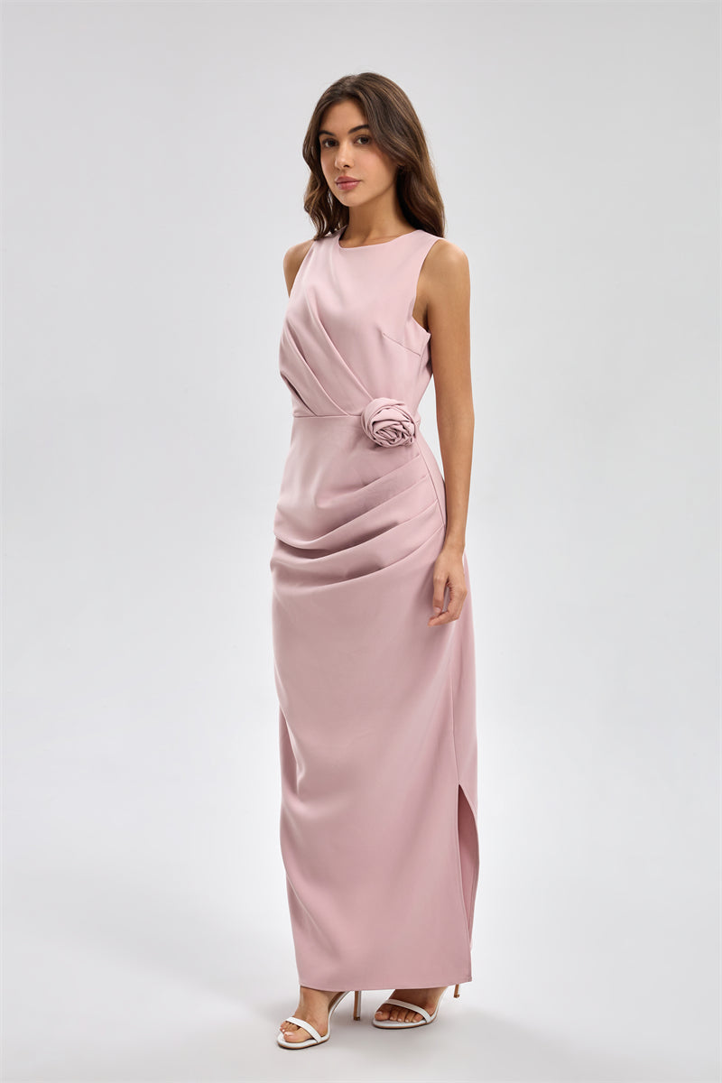 فستان طويل بدون أكمام بتفاصيل منسدلة