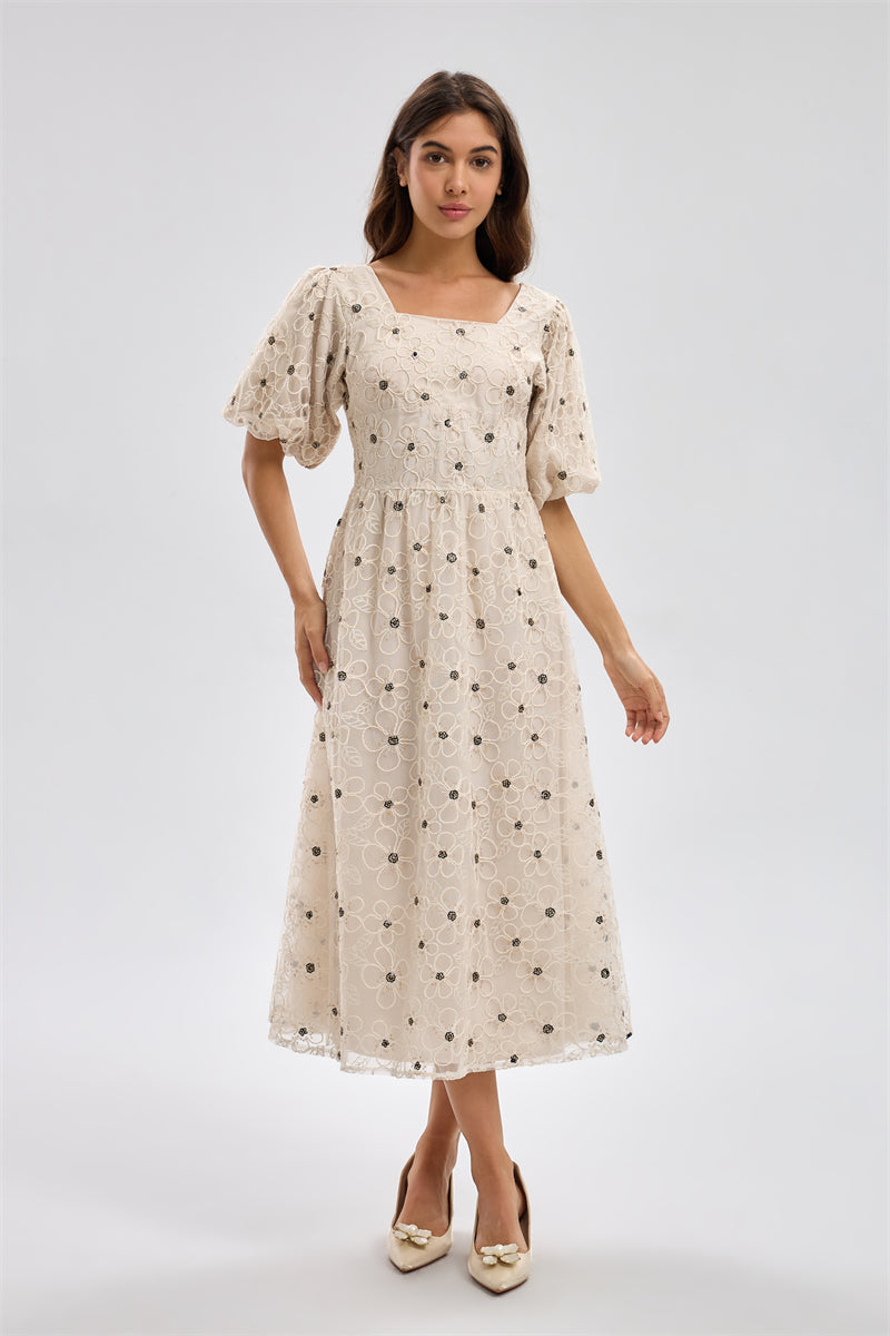 فستان نسائي بطول متوسط بتصميم متوازن وقصة أنيقة مع تطريز ناعم يضيف لمسة راقية دون مبالغة يوفر راحة في الارتداء وشكلا متناسقا يناسب الاستخدام اليومي والتجمعات والمناسبات سهل التنسيق مع الأحذية المختلفة قطعة عملية للمرأة الباحثة عن الأناقة المحتشمة والعصرية في السعودية