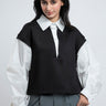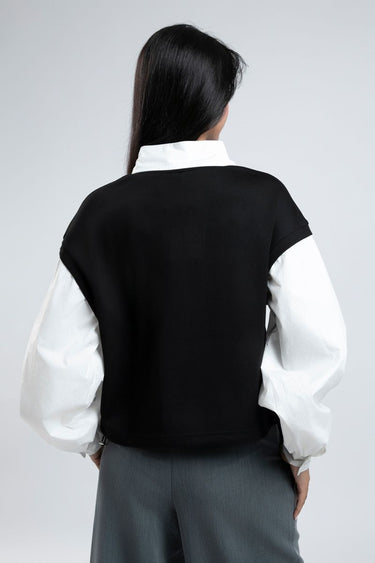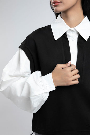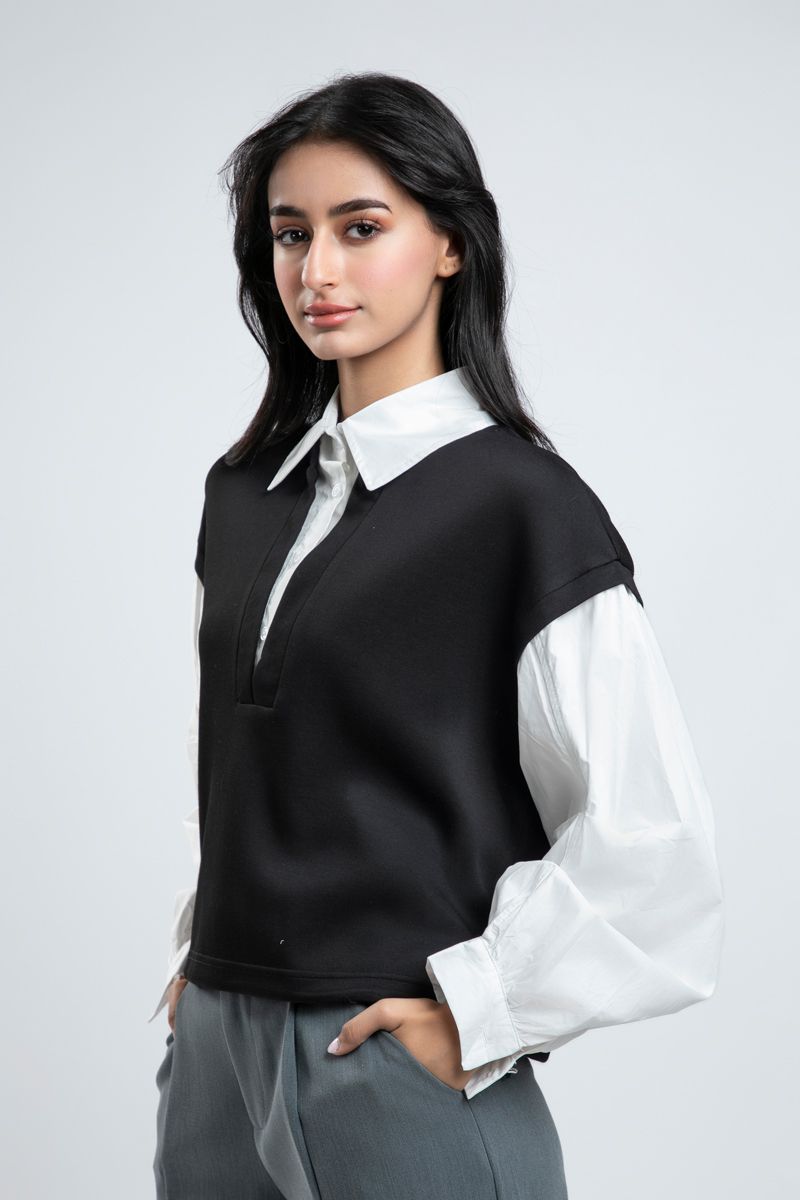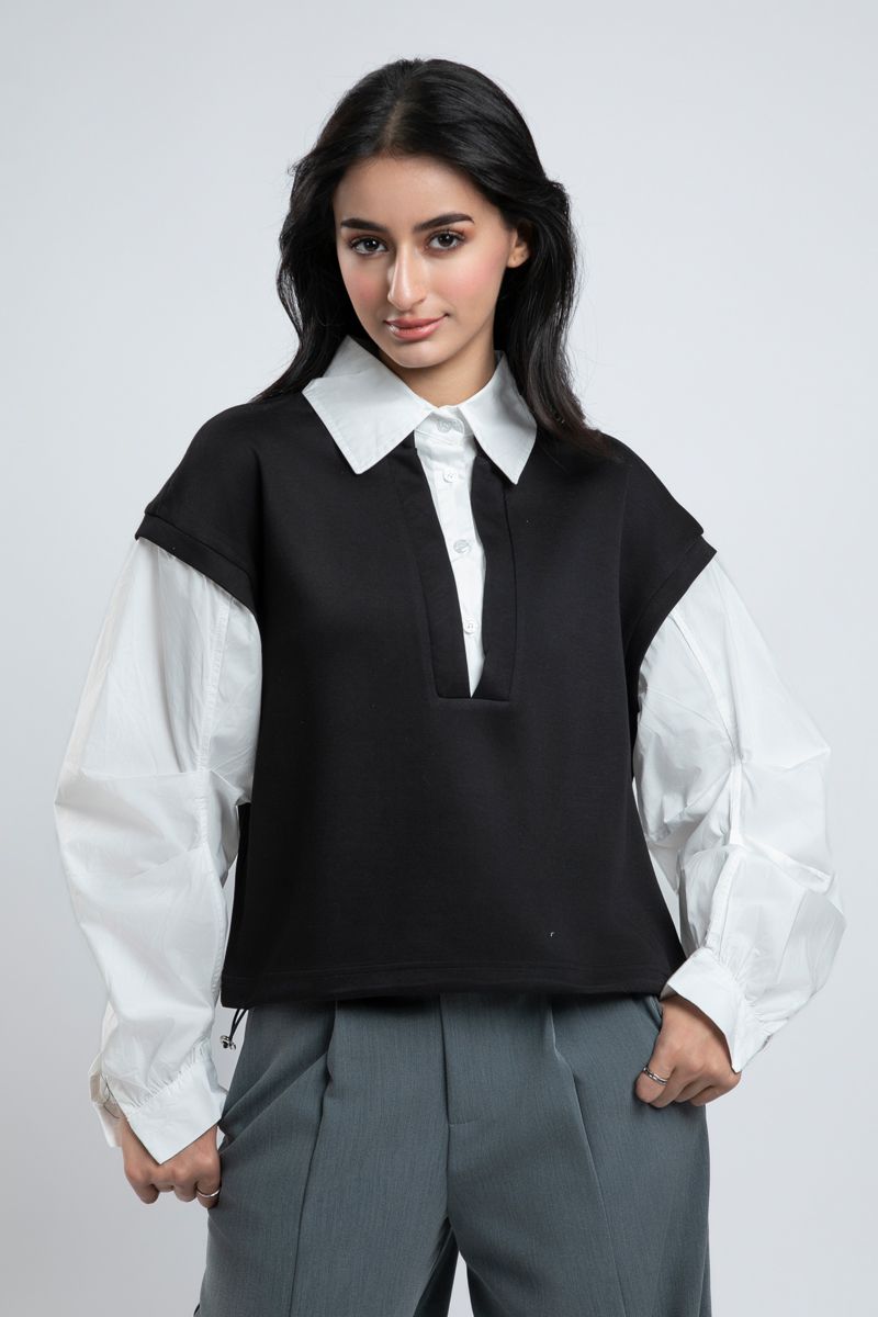 قميص رسمي نسائي بأكمام منفوشة وطبقات متباينة اللون والخامة