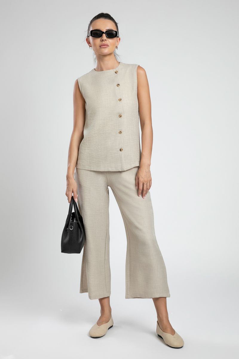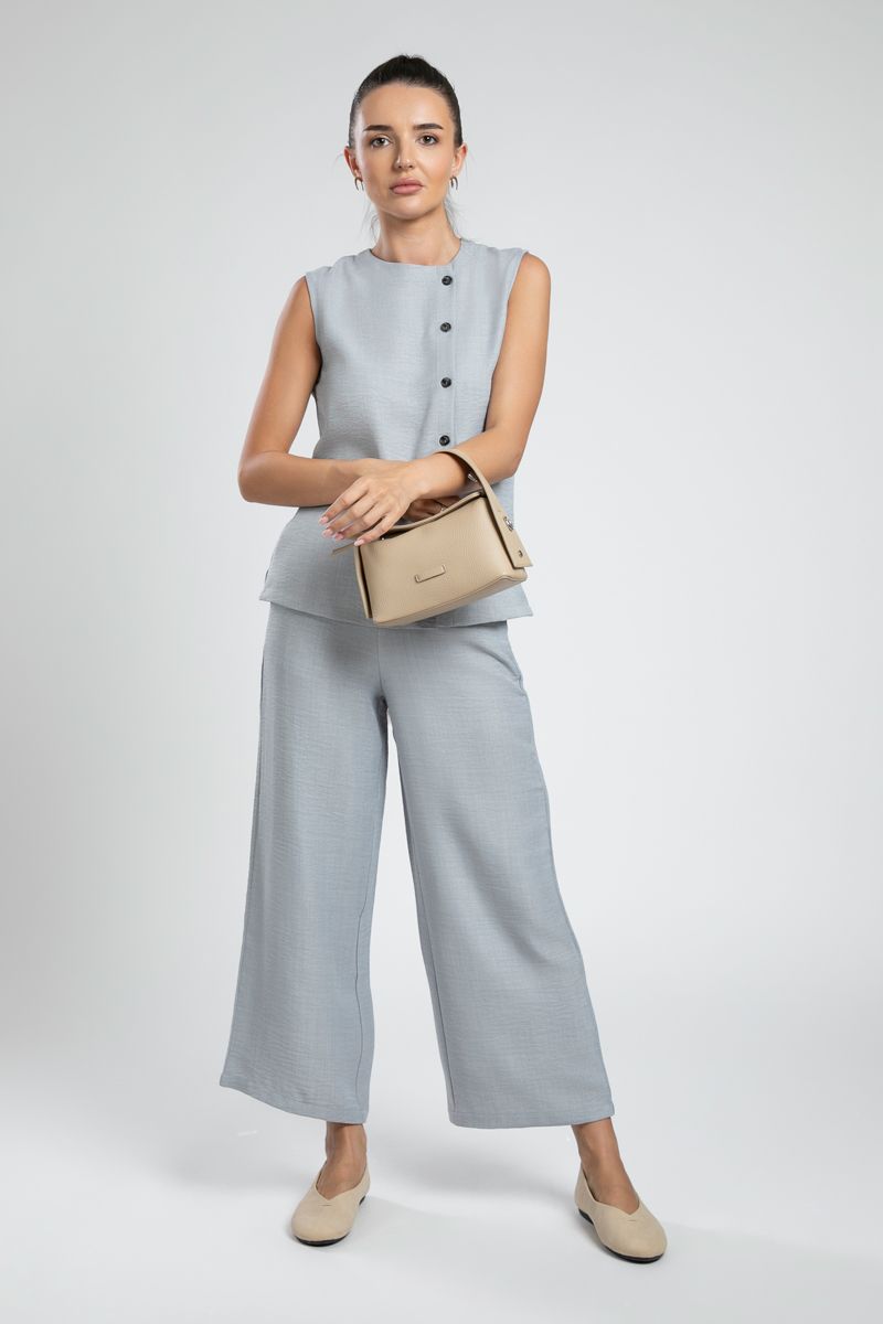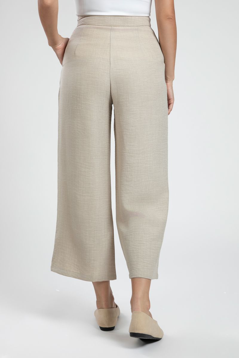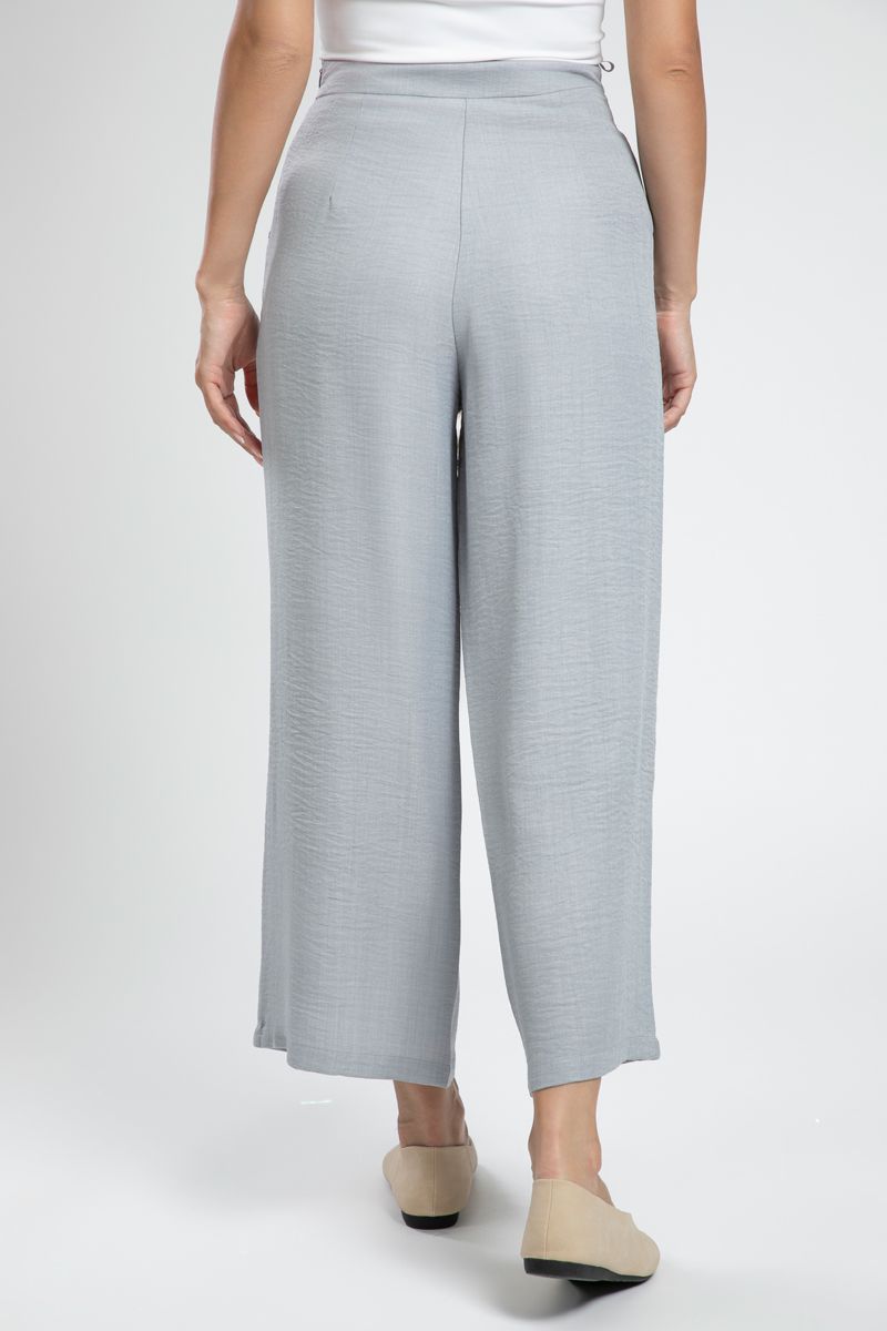 بنطلون نسائي واسع وقصير بأسلوب رسمي – بلون سادة وقماش مجعد
