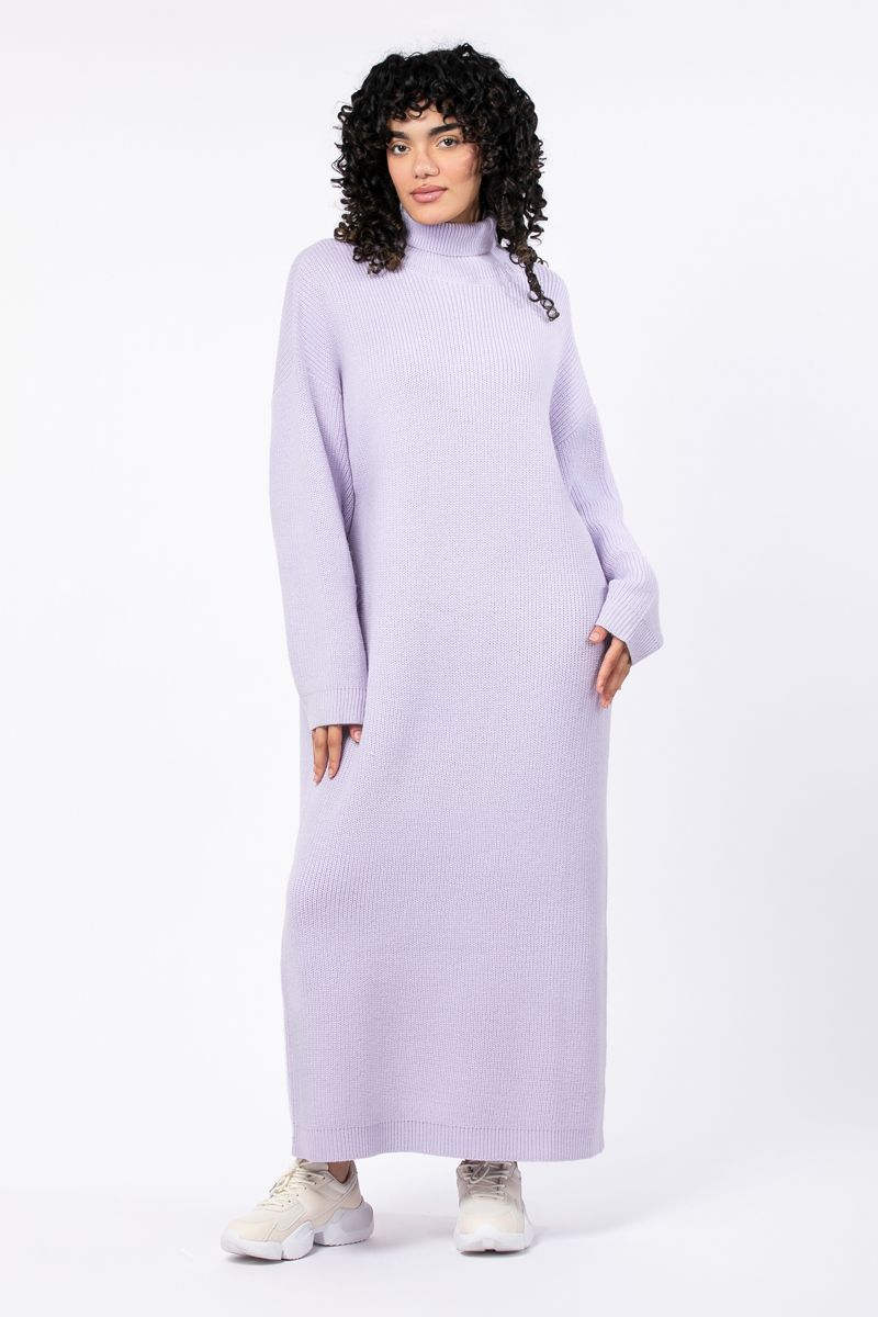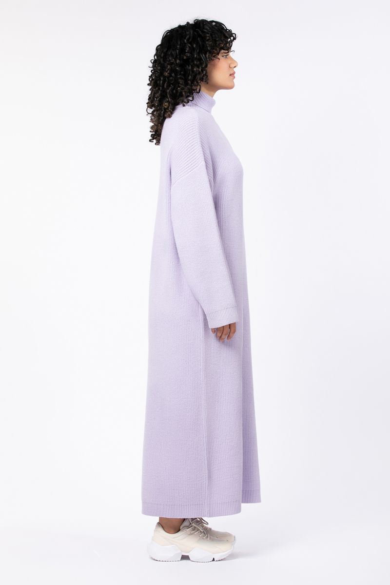 فستان نسائي صوف ماكسي بنقشة مضلعة
