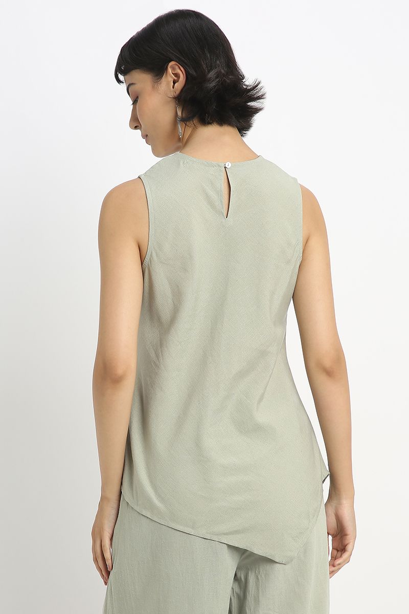 بلوزة نسائية بدون أكمام بتصميم غير متماثل وزر خلفي