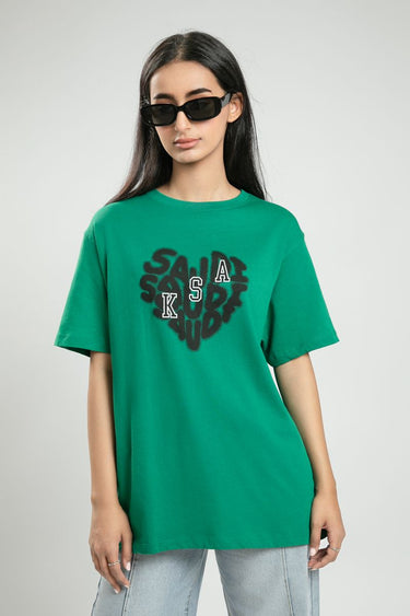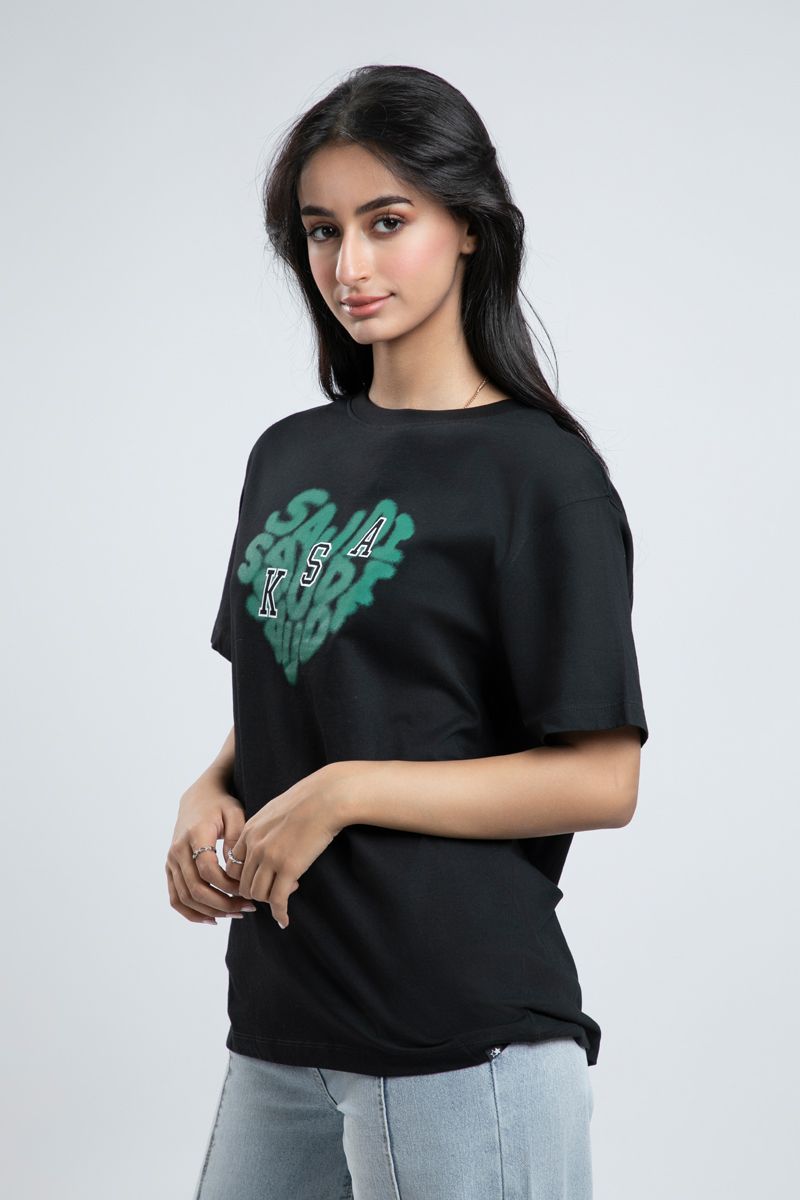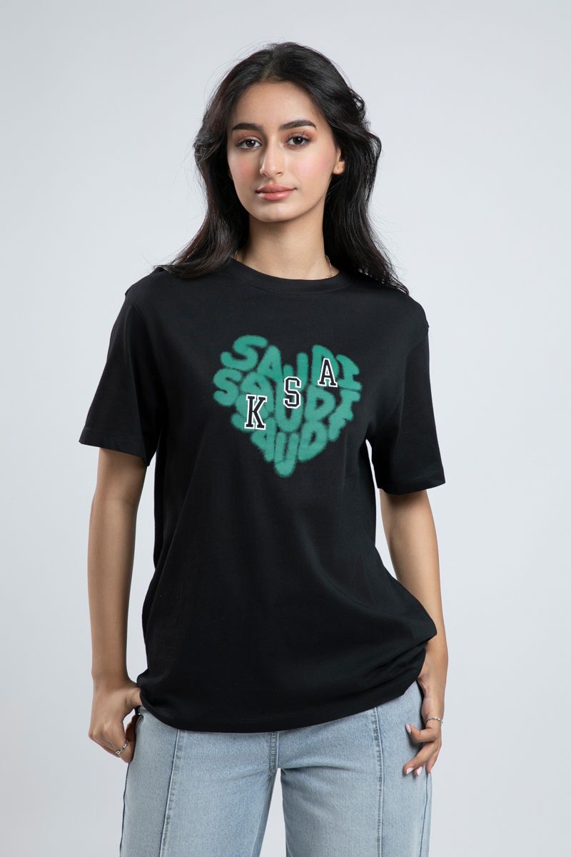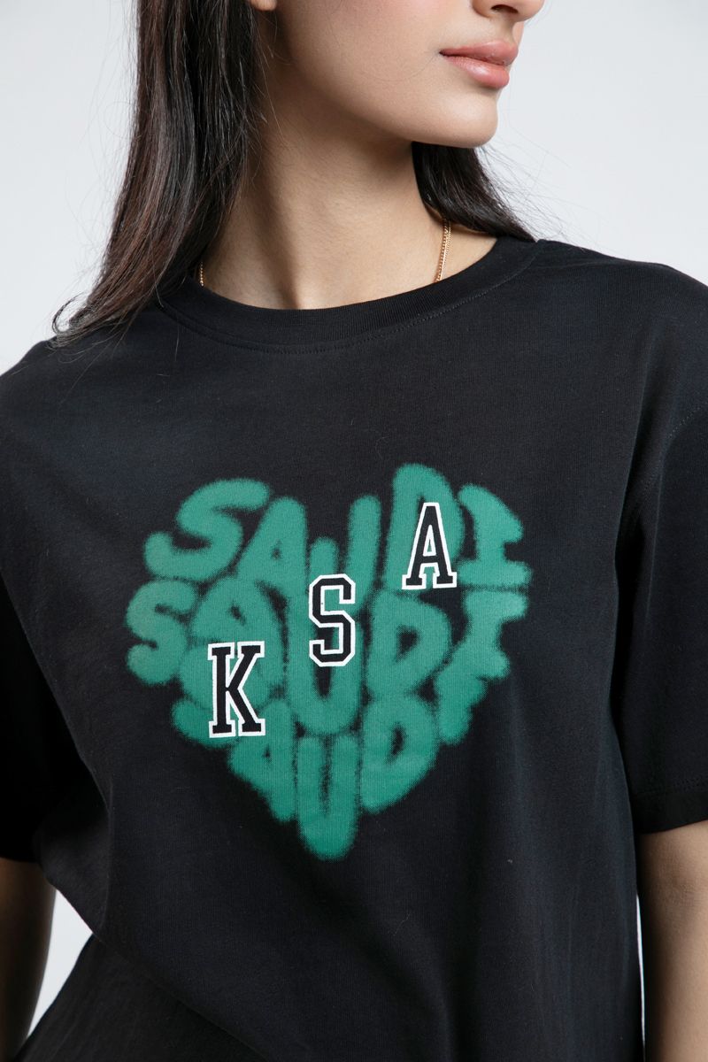 تيشيرت نسائي بأكمام قصيرة – طبعة أمامية بتصميم مستوحى من روح السعودية
