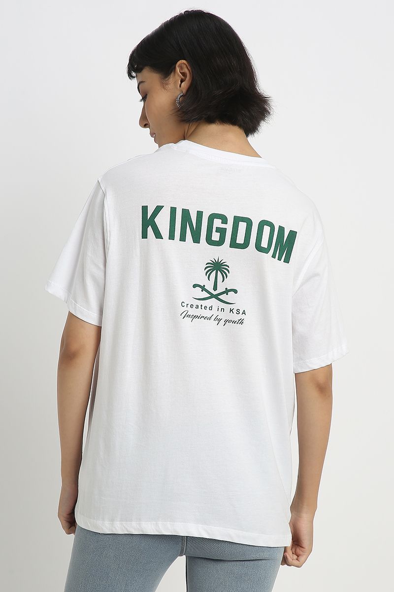 احتفلي بالتراث مع هذا التيشيرت النسائي الكلاسيكي بأكمام قصيرة، مزين بطبعات مستوحاة من روح المملكة على الأمام والخلف. مصمم بياقة دائرية مريحة وقصة تناسب جميع الأوقات، ليجمع بين الأناقة والفخر الثقافي في إطلالة يومية راقية.