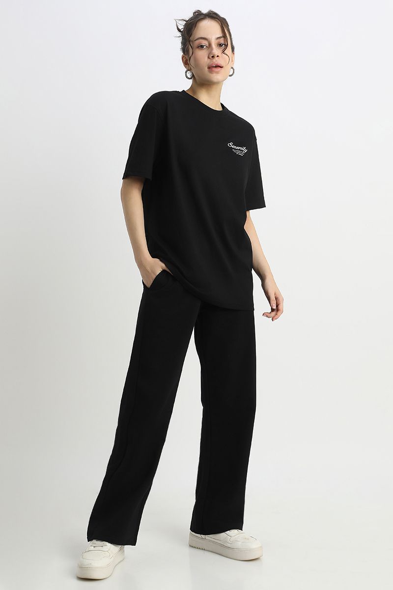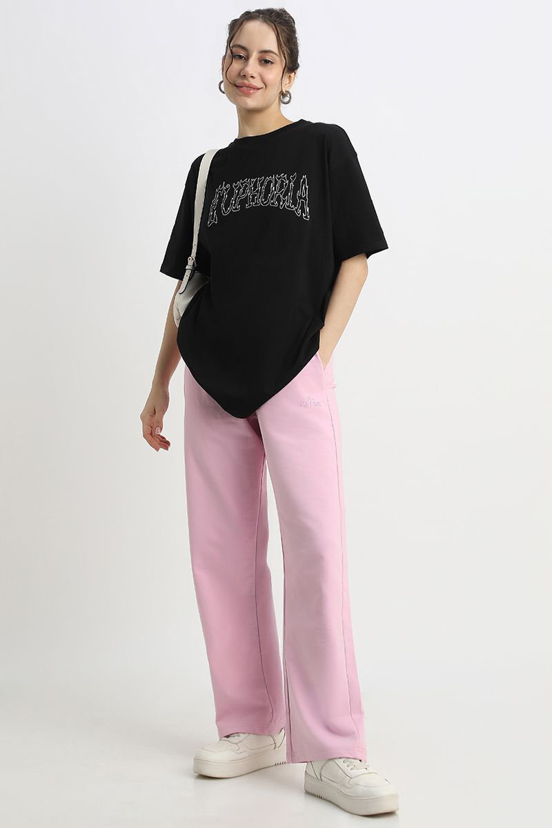 بنطلون رياضي نسائي بقصة عادية – لون موحد مع شعار بنفس لون البنطلون مطبوع