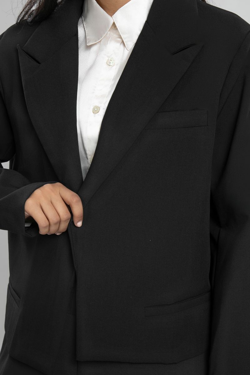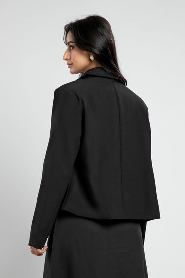 أضيفي لمسة من الأناقة والرقي إلى إطلالتك مع هذا البليزر الأسود الرسمي. يتميز بتصميم كلاسيكي بقصّة مستقيمة وأكمام طويلة مع ياقة مميزة تضفي لمسة عصرية. خامة مريحة تناسب العمل، الاجتماعات أو المناسبات الرسمية. يمكن تنسيقه مع قميص أبيض وبنطلون أو تنورة لمظهر أنيق متكامل.