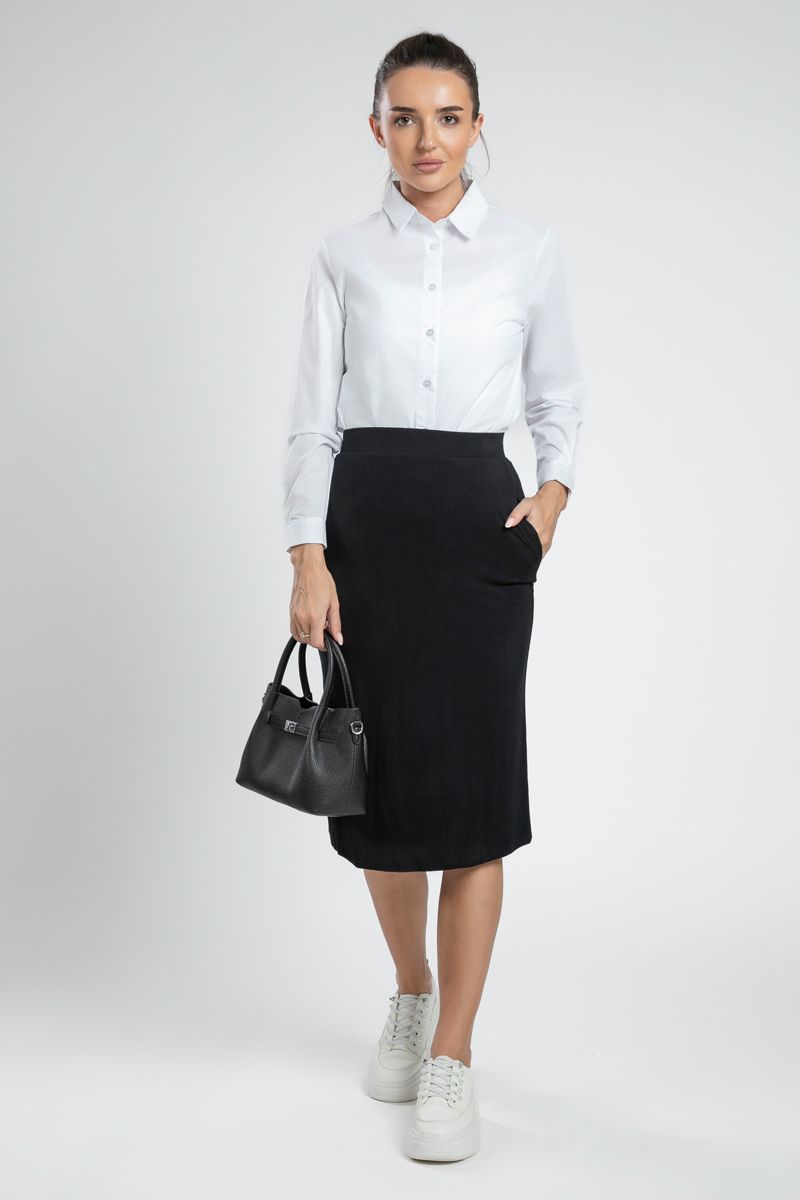 تنورة نسائية ضيقة بطول الركبة بخصر مطاطي وجيوب