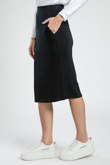 تصميم أنثوي يعزز البساطة الراقية. تنورة بطول الركبة بقصة تلتف حول الجسم بانسيابية، بلون سادة أنيق يناسب مختلف الإطلالات. تتميّز بخصر مطاطي لراحة مثالية، مع جيوب تضيف لمسة عملية دون التنازل عن الأسلوب.