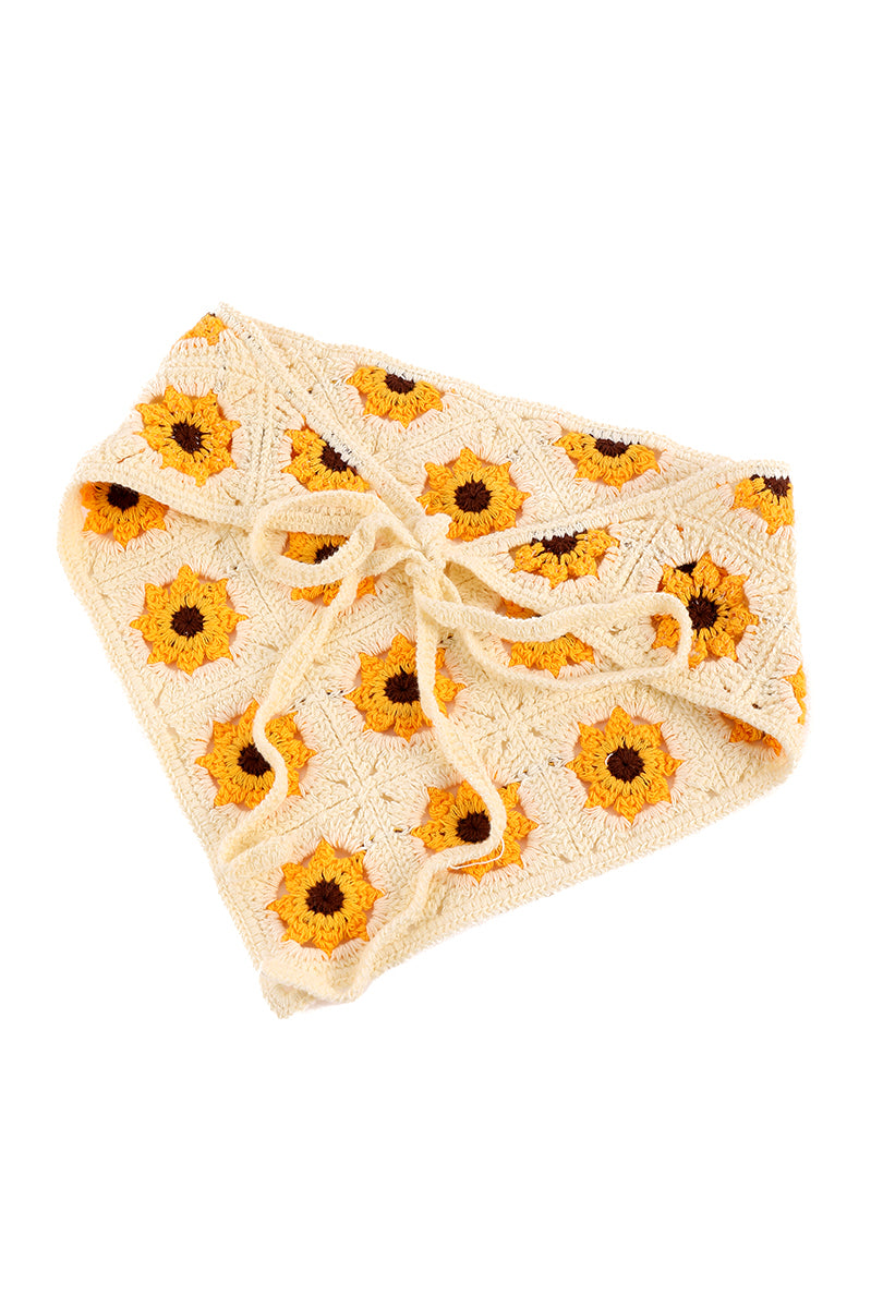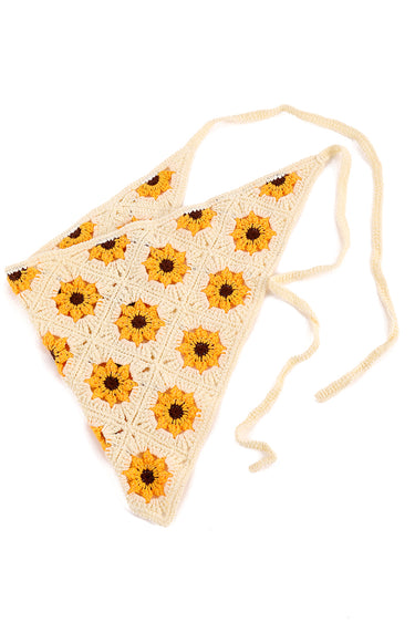 أضيفي لمسة فنية مبهجة إلى إطلالتك مع هذا الوشاح الكروشيه الأنيق الذي يتميز بنقشات زهرية نابضة بالحيوية مستوحاة من جمال الطبيعة وصنع بحياكة ناعمة وتفاصيل مفرغة دقيقة تمنح توازناً مثالياً بين الراحة والأناقة ويأتي بتصميم مثلث كلاسيكي مع أربطة قابلة للتعديل ليمنحك مرونة في التنسيق سواء كغطاء للرأس أو كلمسة أنيقة حول الرقبة لإطلالة بوهيمية عصرية ومميزة
