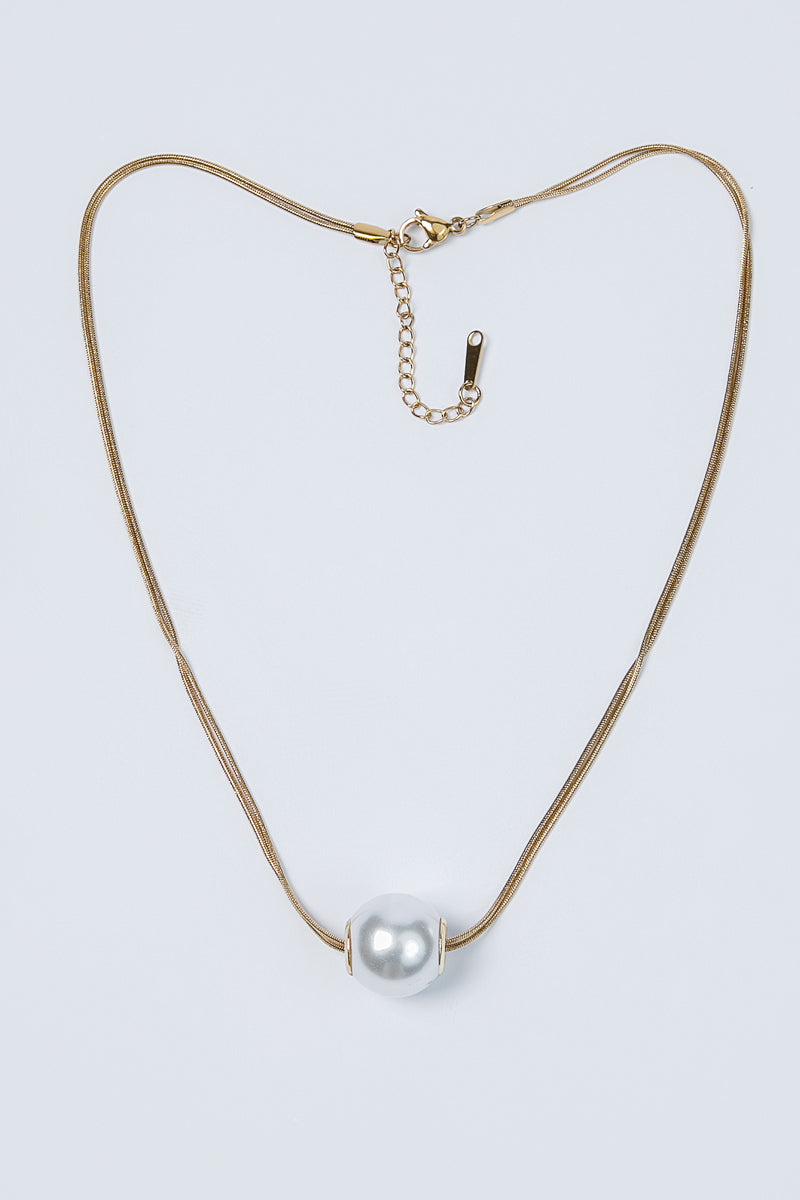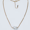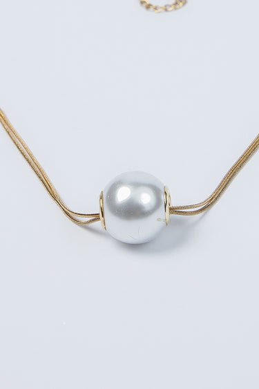 عقد أنيق بتصميم سلسلتين ناعمتين تتوسطه لؤلؤة بارزة بتفاصيل بسيطة وعصرية. مزود بسلسلة قابلة للتعديل لراحة أكبر، ويعد خياراً مثالياً للإطلالات اليومية والمناسبات.