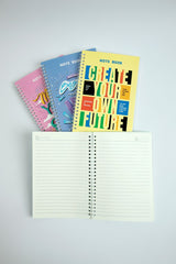 مجموعة من 4 دفاتر سلك ملونة بتصاميم عصرية وعبارات تحفيزية تلهمك في يومك. مثالية لكتابة أفكارك وملاحظاتك اليومية أو للاستخدام المدرسي والجامعي. غلاف مبهج وألوان جذابة، مع سلك عملي ومتين يسهل عليك الاستخدام. اختيار مثالي لكل من يحب التنظيم ويبحث عن إلهام يومي بأسلوب عصري مميز