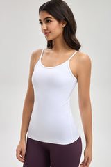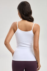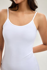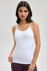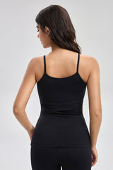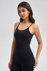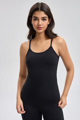 توب أساسي بدون أكمام بتصميم بسيط وحمالات رفيعة مع خامة مرنة توفر راحة وانسيابية للاستخدام اليومي
