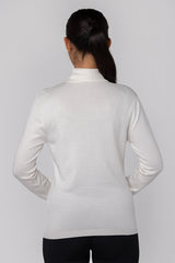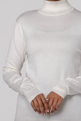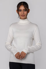توب محبوك ناعم بتصميم ياقة عالية وأكمام طويلة، يتميز ببساطته وقصته المريحة، مما يجعله قطعة أساسية متعددة الاستخدامات يمكن ارتداؤها بمفردها أو تنسيقها مع طبقات لإطلالة أنيقة وكلاسيكية.