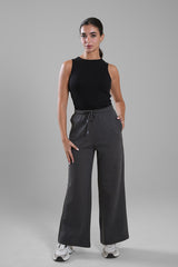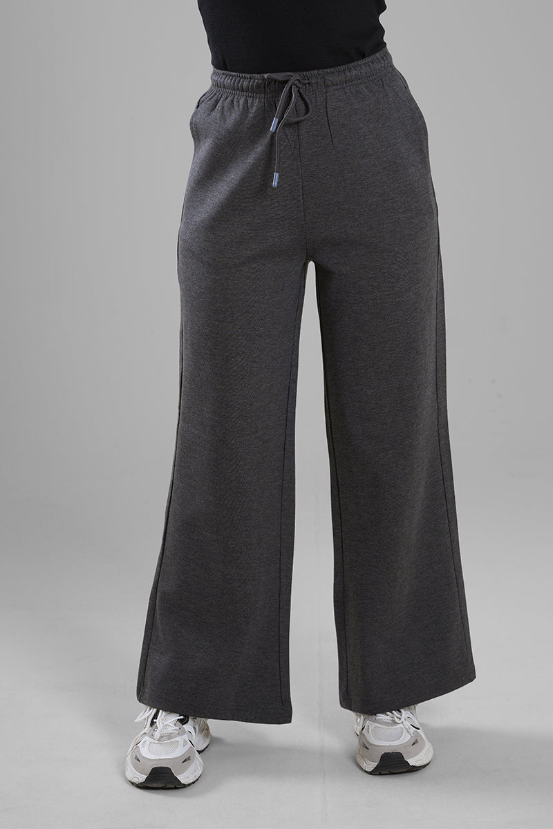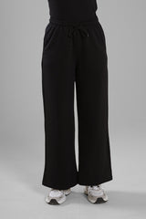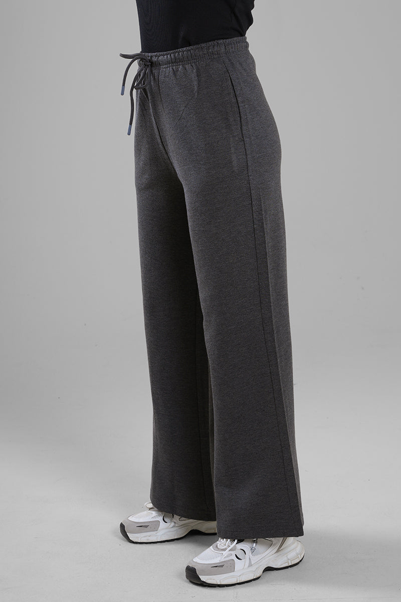 بنطلون نسائي بقصة واسعة وتصميم مريح مع خصر مطاطي ورباط قابل للتعديل. يوفر حرية حركة وملاءمة عملية، مناسب للاستخدام اليومي والإطلالات الكاجوال.