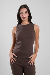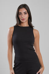 توب نسائي بدون أكمام بقصة ملائمة وتصميم بسيط مع فتحة رقبة دائرية. يمنح مظهراً أنيقاً وسلساً، مناسب للارتداء بمفرده أو كقطعة أساسية للتنسيق اليومي.