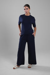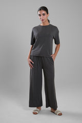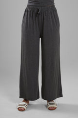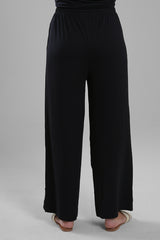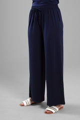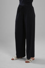بنطلون نسائي بتصميم واسع الساقين وقصة مريحة مع خصر مطاطي لراحة الاستخدام اليومي. يوفر انسيابية في الحركة ويعد خياراً مناسباً للإطلالات اليومية، الاسترخاء، أو التنسيق العملي البسيط.