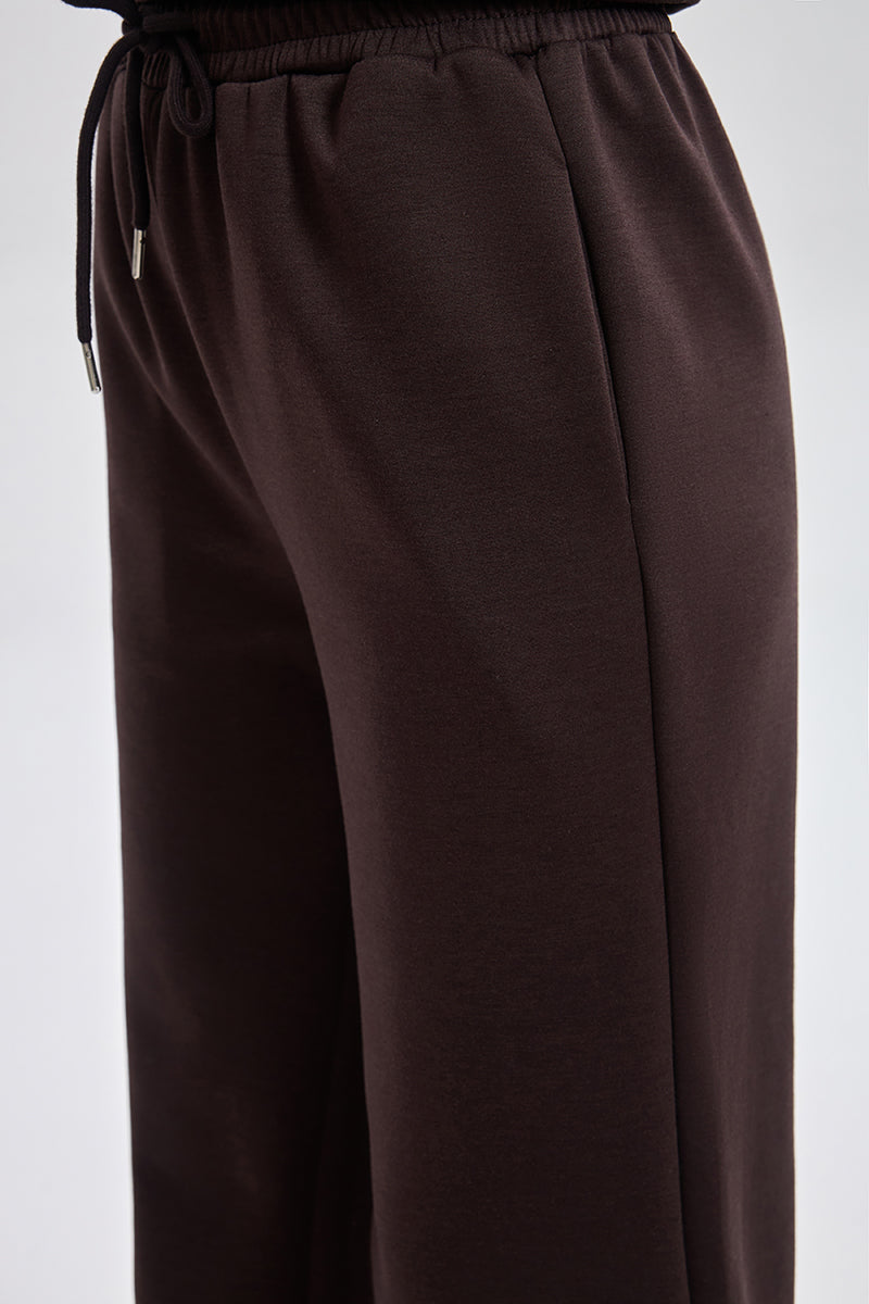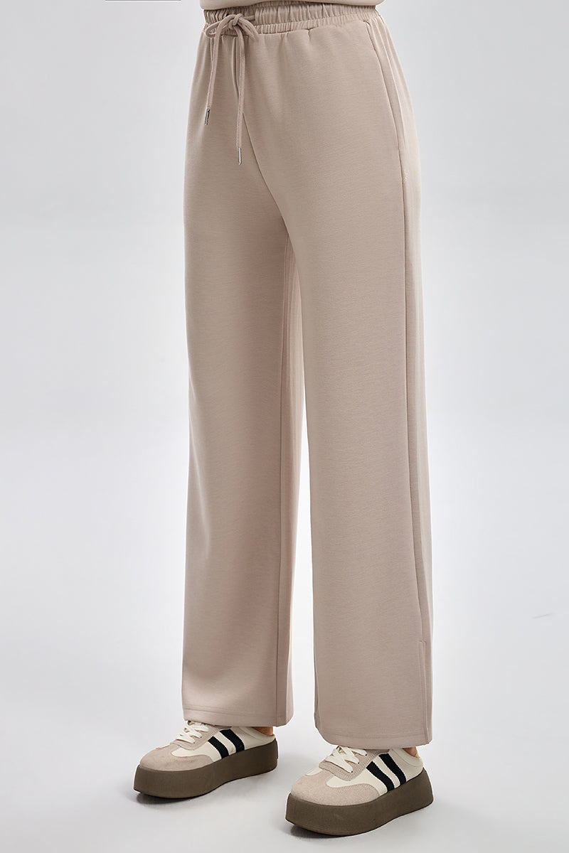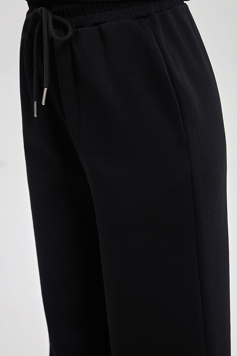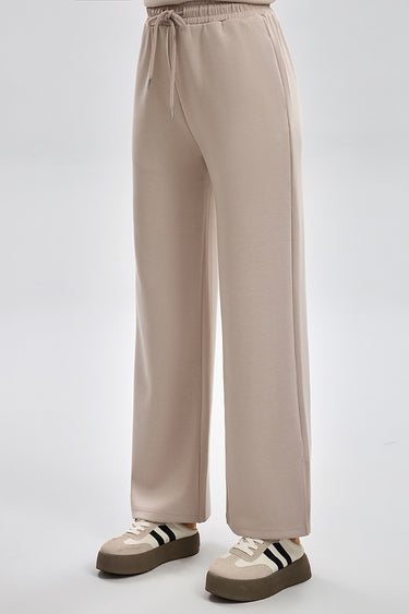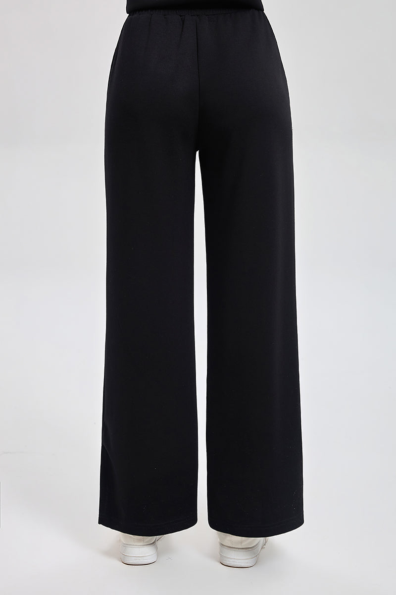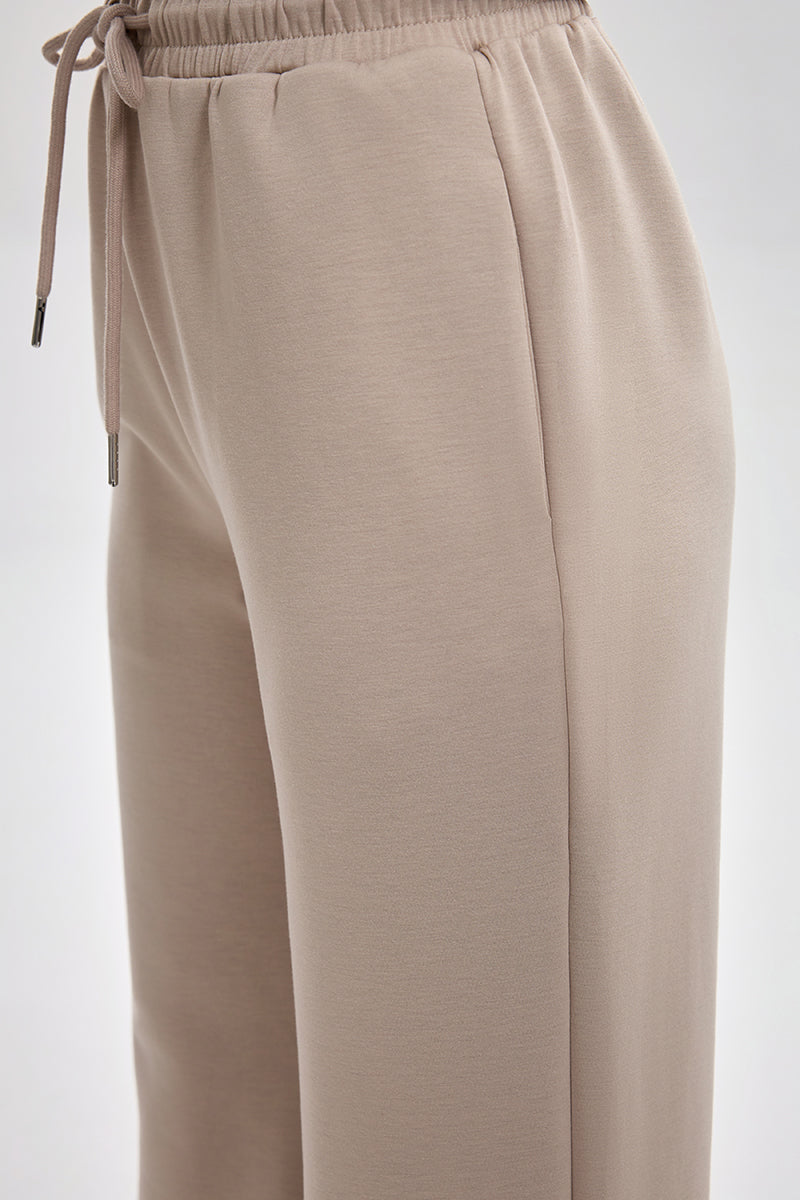 بنطلون رياضي بقصة مريحة مع خصر مطاطي ورباط قابل للتعديل. تصميم عملي بملمس ناعم وقصة مستقيمة تمنح راحة عالية ومظهر كاجوال مناسب للاستخدام اليومي