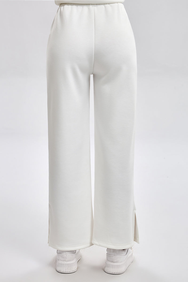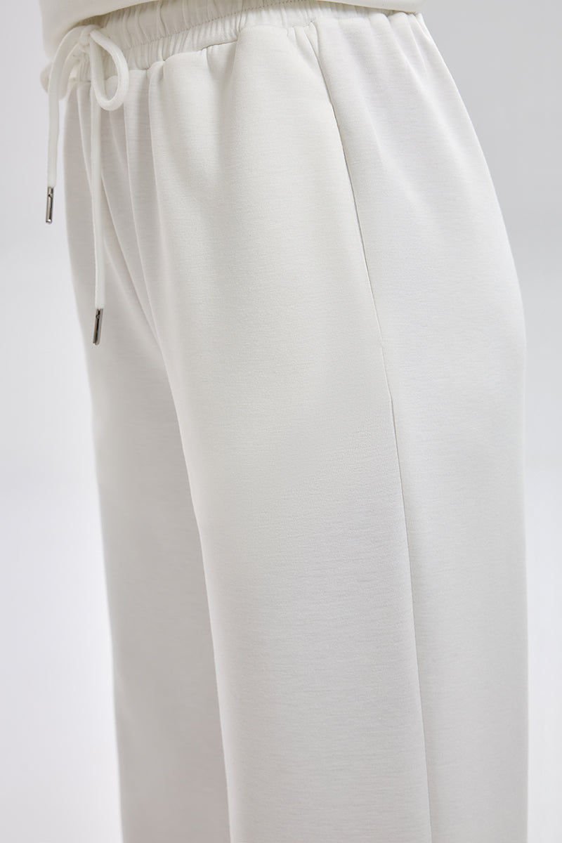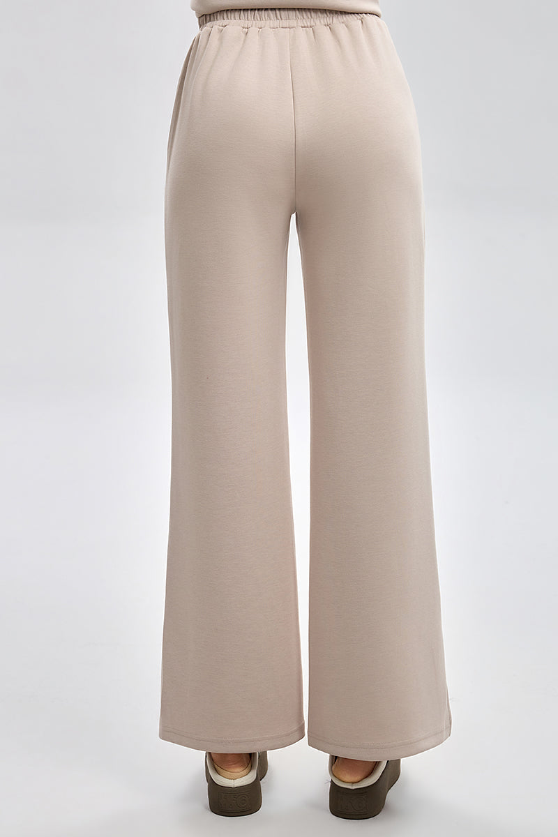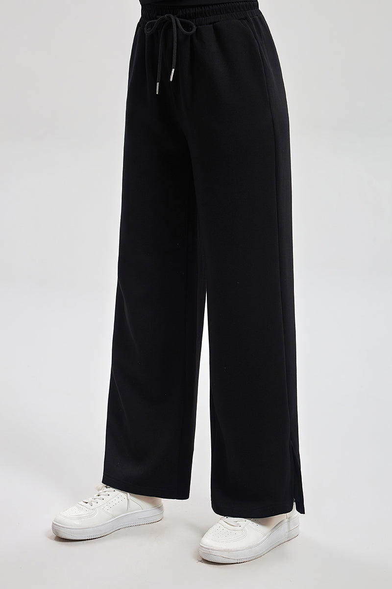 بنطلون رياضي بقصة مريحة مع خصر مطاطي ورباط قابل للتعديل. تصميم عملي بملمس ناعم وقصة مستقيمة تمنح راحة عالية ومظهر كاجوال مناسب للاستخدام اليومي