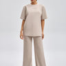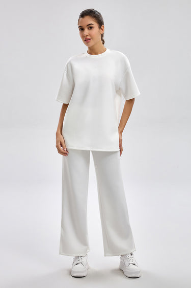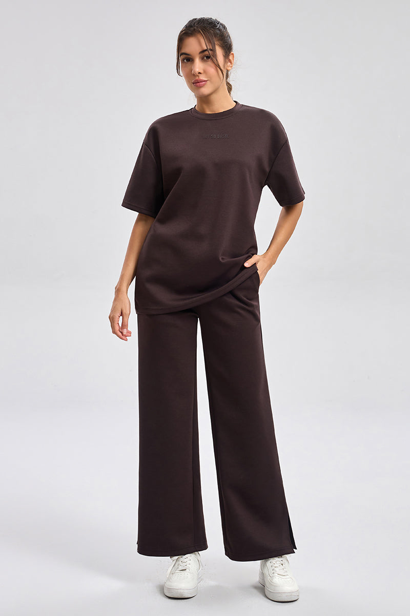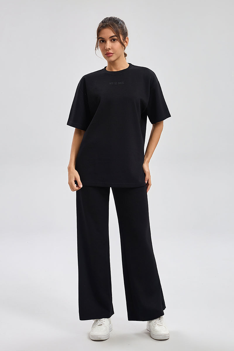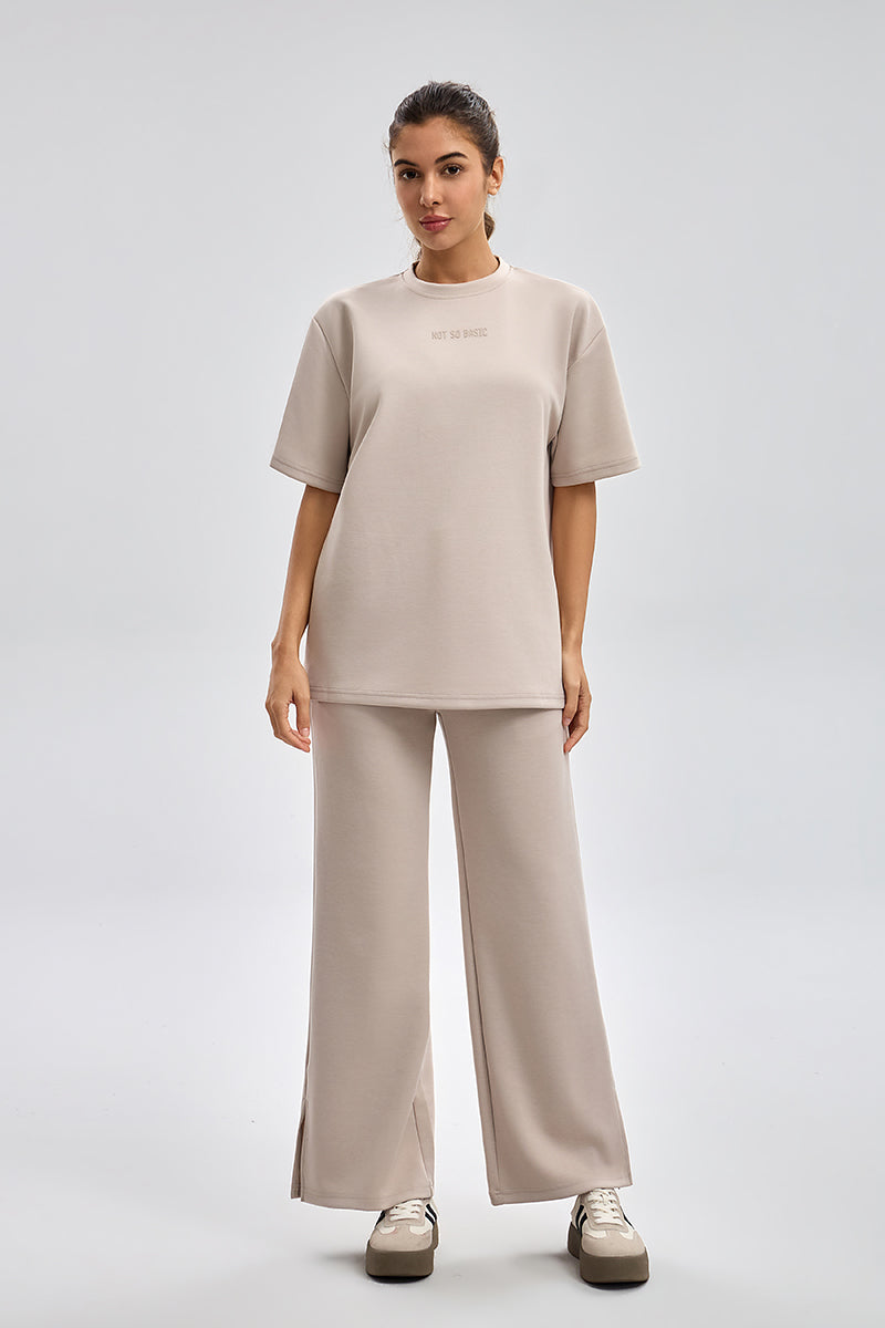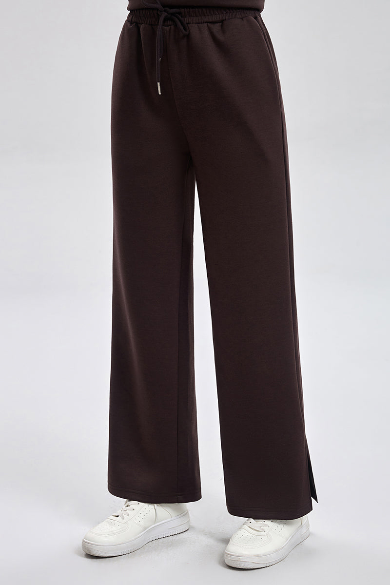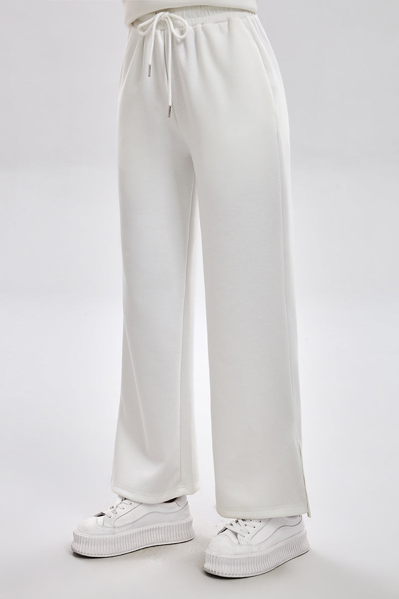 بنطلون رياضي بقصة مريحة مع خصر مطاطي ورباط قابل للتعديل. تصميم عملي بملمس ناعم وقصة مستقيمة تمنح راحة عالية ومظهر كاجوال مناسب للاستخدام اليومي