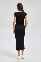 فستان ميدي بقصة ضيقة وأكمام قصيرة