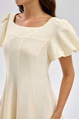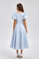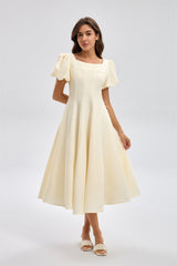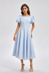 فستان ميدي بقصة واسعة وأكمام منفوخة