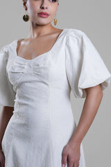 فستان طويل بنسيج بارز وأكمام منفوخة