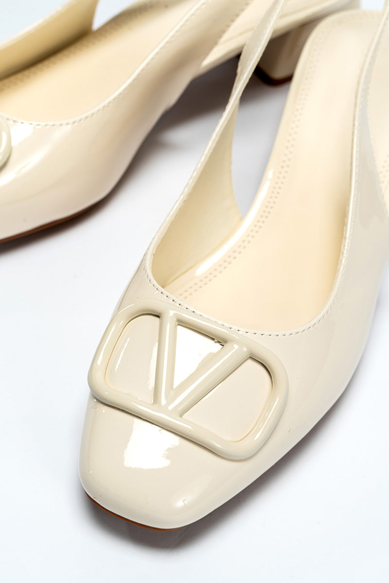 حذاء بتصميم أنيق ومريح، يجمع بين مقدمة لامعة مغلقة وسير خلفي مرن يسهّل الارتداء. يتميز بتفصيل إبزيم أمامي يضفي طابعاً كلاسيكياً هادئاً، مع كعب منخفض يمنح ثباتاً وراحة أثناء المشي. خيار مناسب للإطلالات اليومية أو التنسيقات شبه الرسمية من دون أي تعقيد درامي.