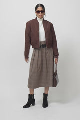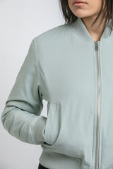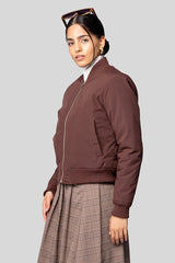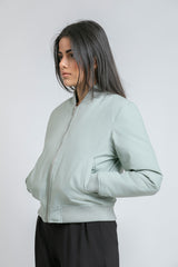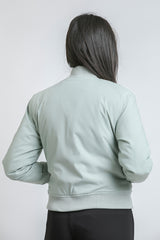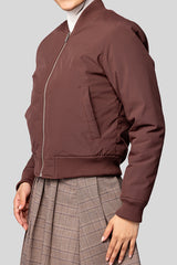 جاكيت بومبر بسحاب أمامي مع أساور وحافة مضلّعة وجيوب جانبية، بتصميم ناعم يمنح إطلالة بسيطة وعصرية للاستخدام اليومي.