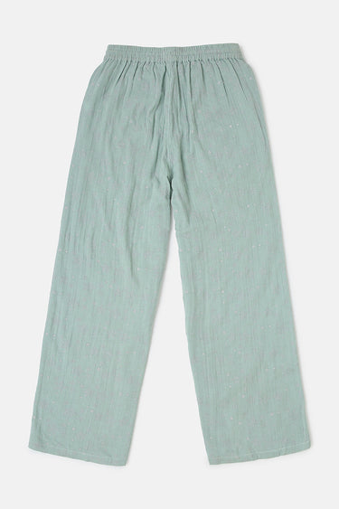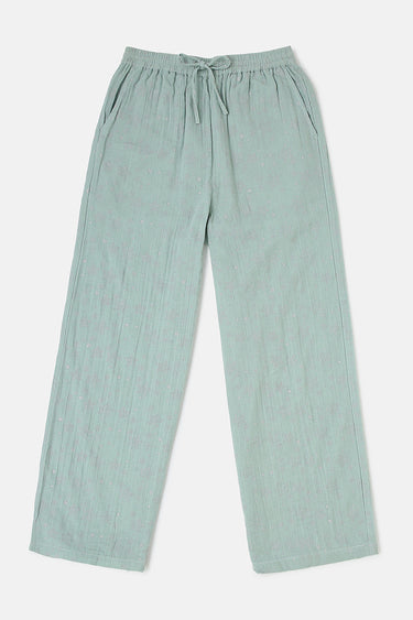 بنطلون منزلي بقصة واسعة تمنح راحة عالية وسهولة في الحركة. يتميز بخصر مطاطي مع رباط قابل للتعديل لملاءمة أفضل، مع تصميم بساق مستقيمة يوفر استخدامًا مريحًا طوال اليوم داخل المنزل. قطعة عملية وبسيطة للاستخدام اليومي.