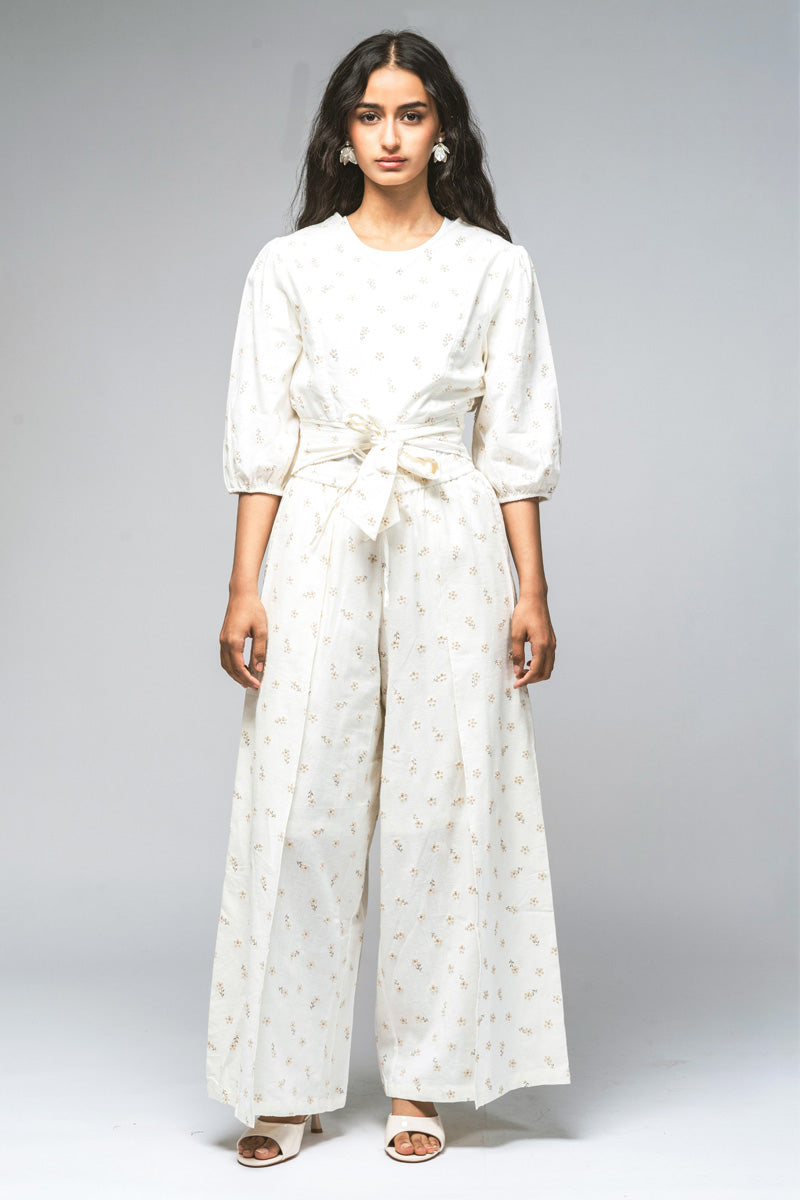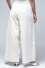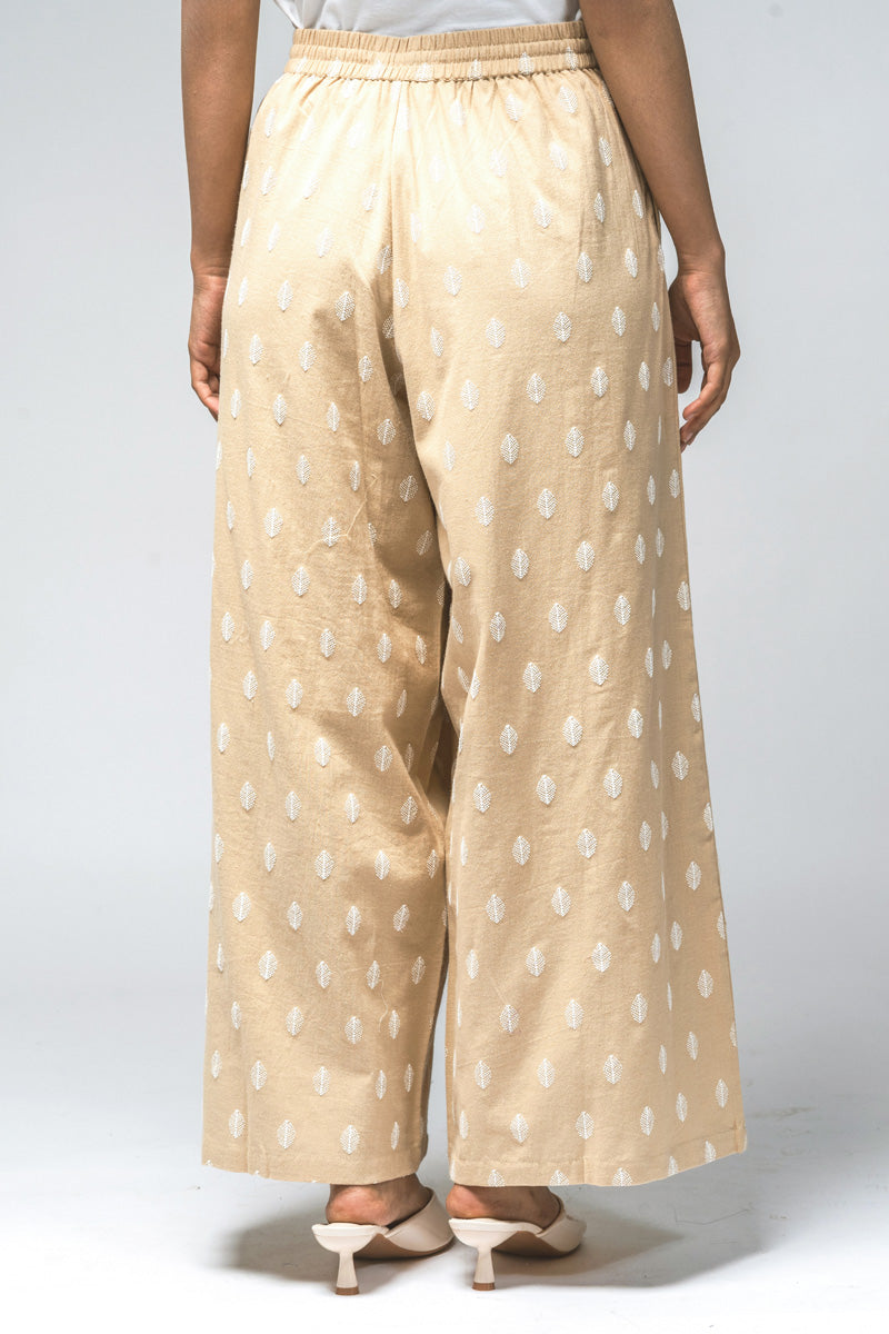 بنطلون واسع بتفاصيل تطريز ورباط خصر