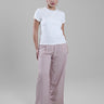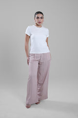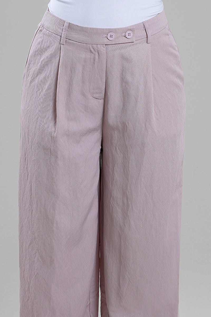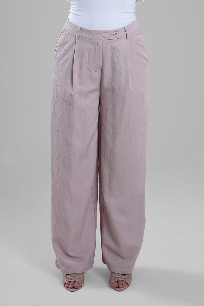 بنطلون بقصة مريحة وساق واسعة تمنح حرية حركة وراحة أثناء الارتداء. يتميز بخصر منظم مع تفاصيل أزرار وخامة خفيفة ناعمة تناسب الإطلالات اليومية أو التنسيقات الأنيقة.