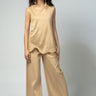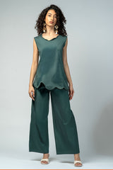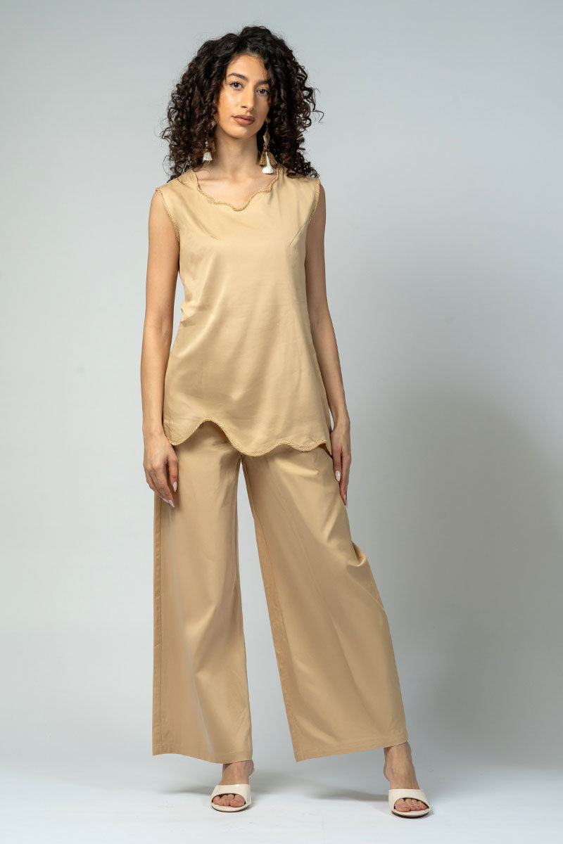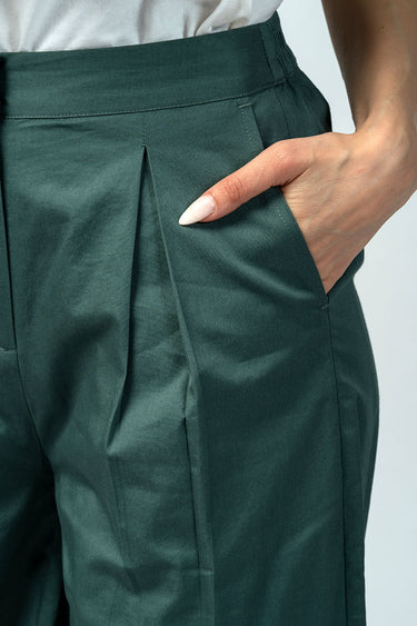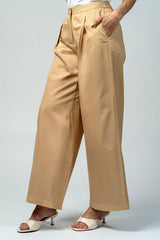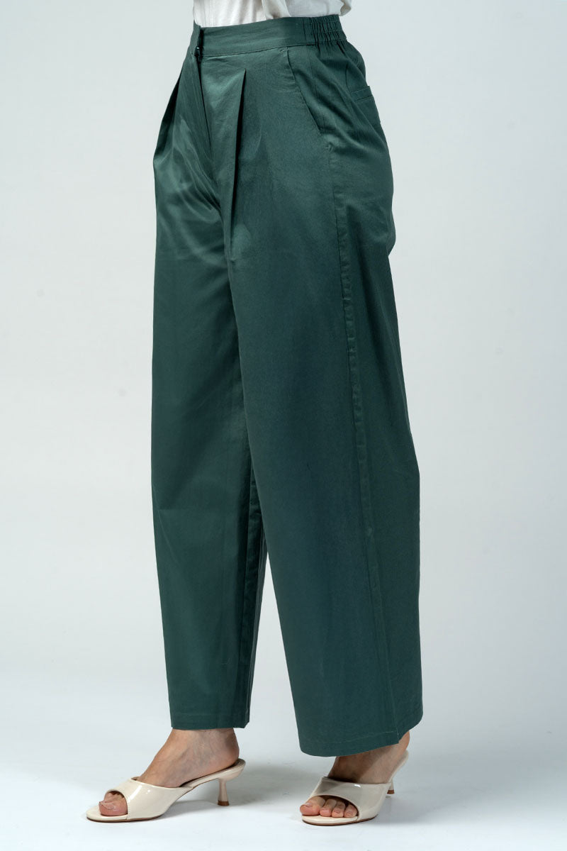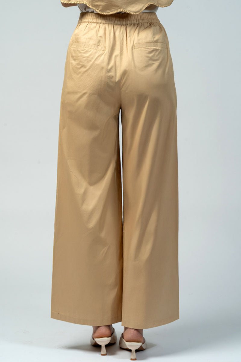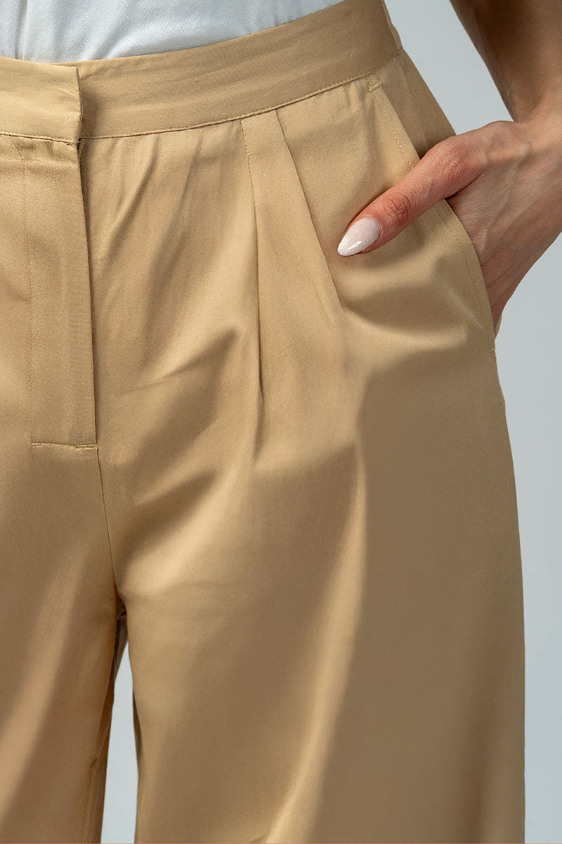 بنطلون بتصميم واسع يوفر راحة عالية وحركة سهلة، مع طيات أمامية تضيف لمسة منظمة على القَصّة. يتميز بخصر ثابت من الأمام مع مطاط خلفي لملاءمة أفضل، وجيوب جانبية عملية للاستخدام اليومي. مناسب للتنسيق مع البلوزات والقطع العلوية المختلفة لإطلالات عملية ومتوازنة.