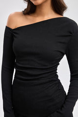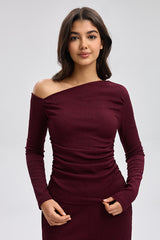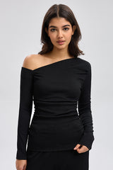بلوزة كتف واحد بأكمام طويلة