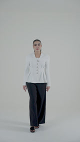 بليزر نسائي بتصميم أنيق وقصة محددة تبرز القوام بشكل متوازن. يتميز بإغلاق أمامي بأزرار وقصة منظمة عند الخصر تمنح مظهراً احترافياً ومرتباً. مناسب لإطلالات العمل، المناسبات الرسمية، أو التنسيق اليومي الراقي.