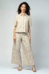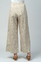 بنطلون بتصميم واسع يوفر راحة عالية أثناء الارتداء، مع طبعة زخرفية تضيف لمسة مميزة دون مبالغة. يأتي بقصة مستقيمة وانسيابية تناسب الإطلالات اليومية والكاجوال الأنيقة. سهل التنسيق مع البلوزات والقمصان لمظهر متوازن وعملي.