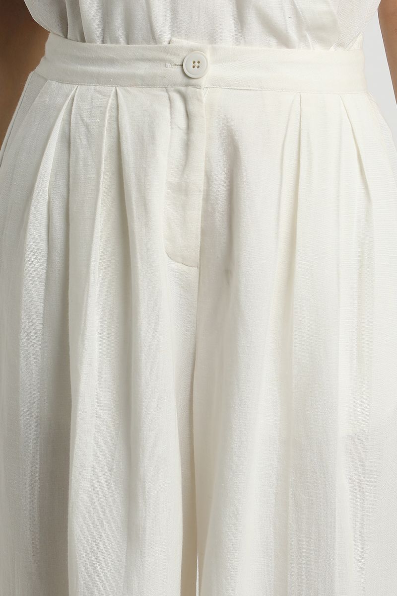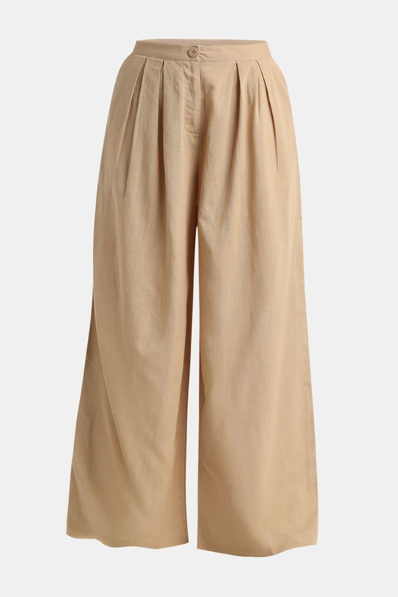 بنطلون نسائي واسع فضفاض – لون موحد مع طيات أمامية