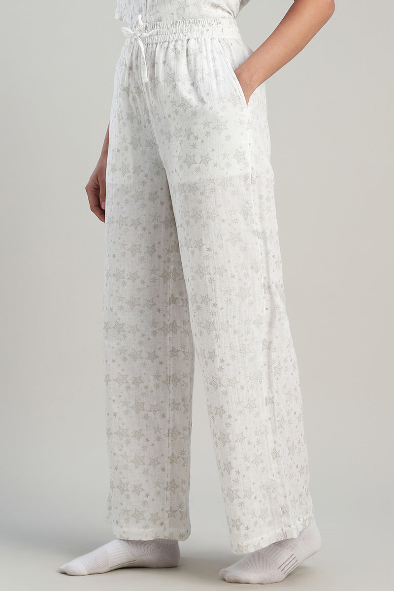 بنطلون منزلي بقصة واسعة تمنح راحة عالية وسهولة في الحركة. يتميز بخصر مطاطي مع رباط قابل للتعديل لملاءمة أفضل، مع تصميم بساق مستقيمة يوفر استخدامًا مريحًا طوال اليوم داخل المنزل. قطعة عملية وبسيطة للاستخدام اليومي.