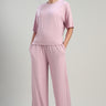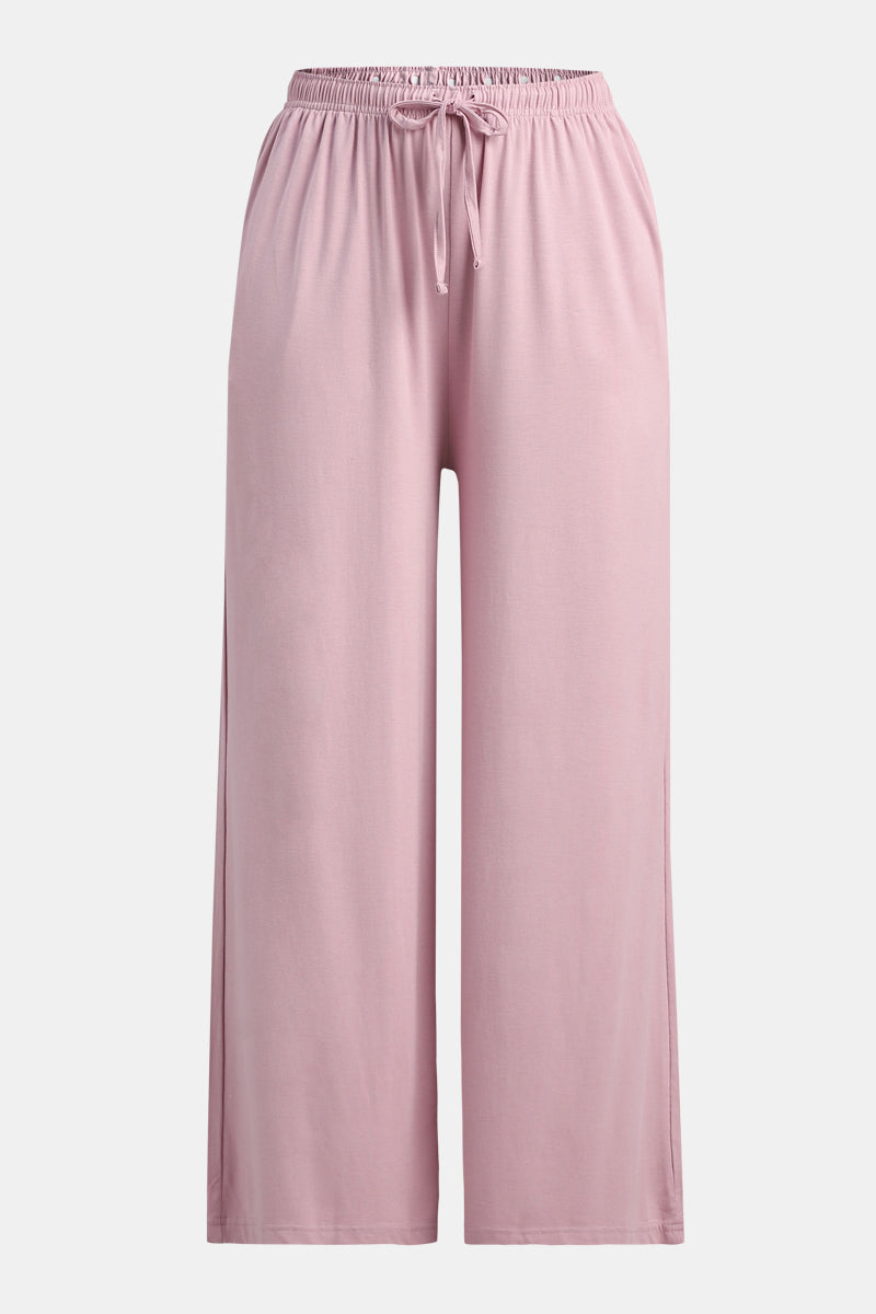 بنطلون مريح للبيت بتصميم واسع مع خصر مطاطي ورباط قابل للتعديل لراحة أفضل وملاءمة مرنة. يتميز بقصة مريحة وانسيابية تمنح سهولة في الحركة وملمس ناعم مناسب للاستخدام اليومي. قطعة أساسية متعددة الاستخدامات