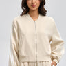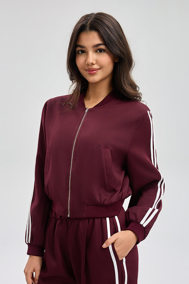 جاكيت بطول عادي وتصميم عملي بسحاب أمامي لسهولة الارتداء. يتميز بأساور وحافة سفلية مضلعة تمنح راحة وثبات في اللبس. مزود بطبعة خلفية تضيف لمسة عصرية تناسب الإطلالات اليومية والتنسيقات الكاجوال.