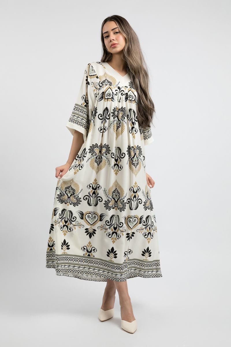 Crafted with lightweight fabric, this dress is ideal for the warm Saudi climate, offering a breezy fit that allows for freedom of movement