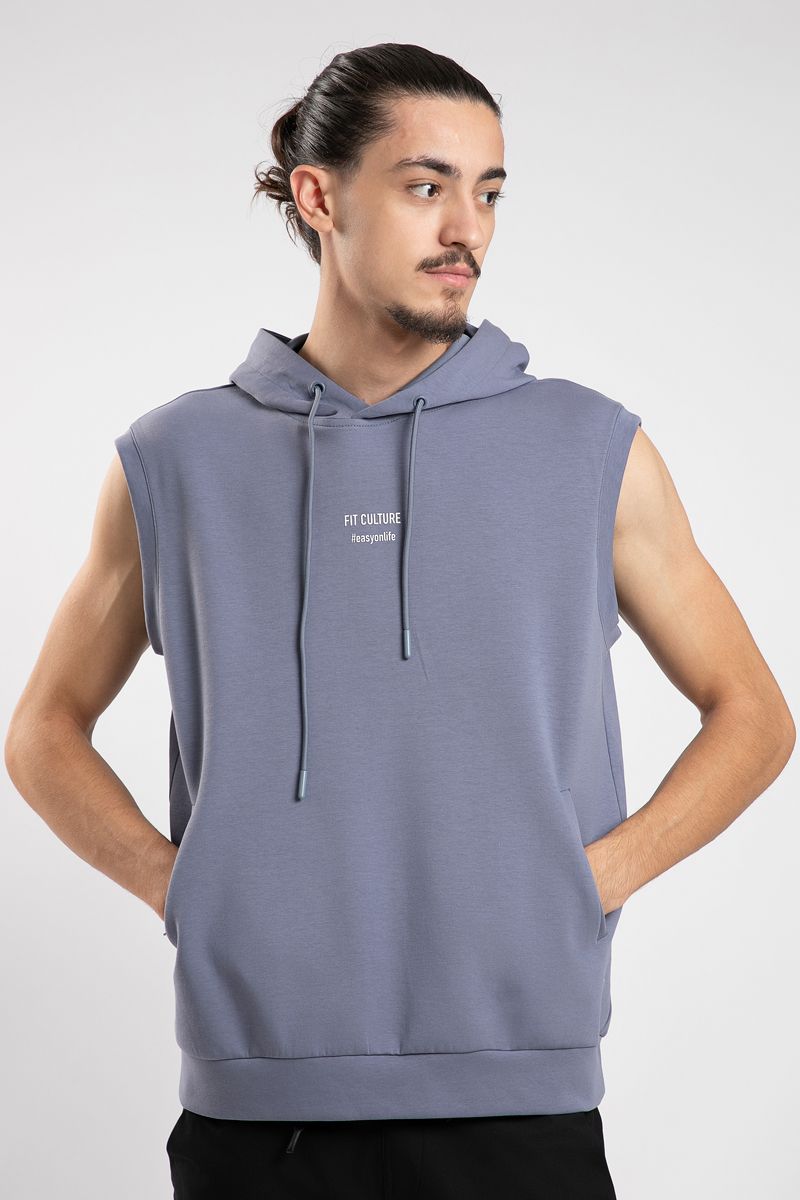 Level up your sporty style with this sleeveless men’s hoodie—made for movement and everyday comfort. Featuring a small front print, attached hood with adjustable drawstring, and practical front pockets, this piece blends performance with casual cool. Ideal for workouts, layering, or laid-back streetwear vibes.